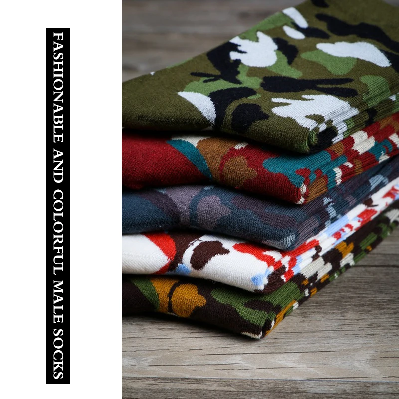 Модные камуфляжные мужские хлопковые носки, 5 пар, цветные граффити, мужские носки в стиле хип-хоп, армейский зеленый, носки для скейтборда, подарок для мужчин