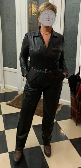 Комбез пришел довольно быстро. Спасибо продавцу. Одна из удачных покупок, Сел идеально. Брюки прямые, как я люблю, не трико. Не клеенка, тонкая эко-кожа, внутри что-то типа синтетической байки, утепленный. Молния пластиковая. На ремне отсутствует пряжка - снимаю звезду. Ремень подберу другой