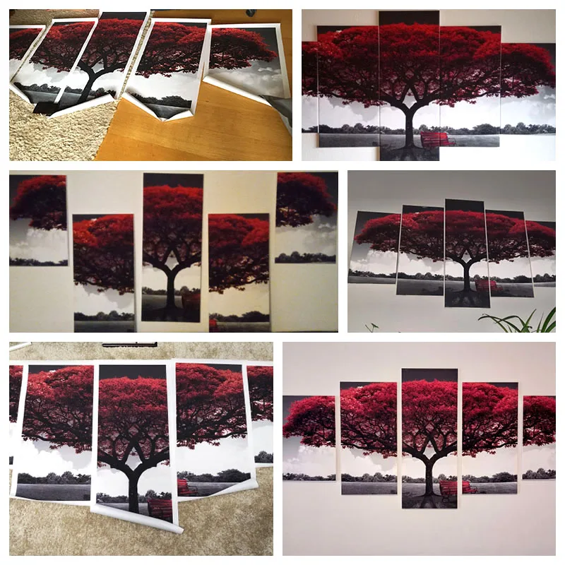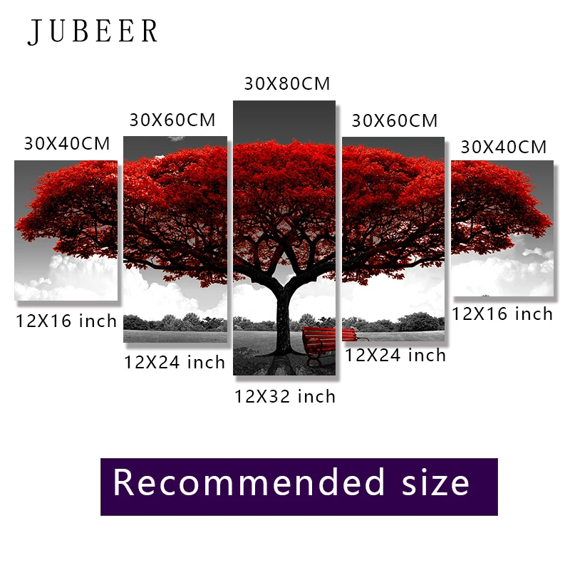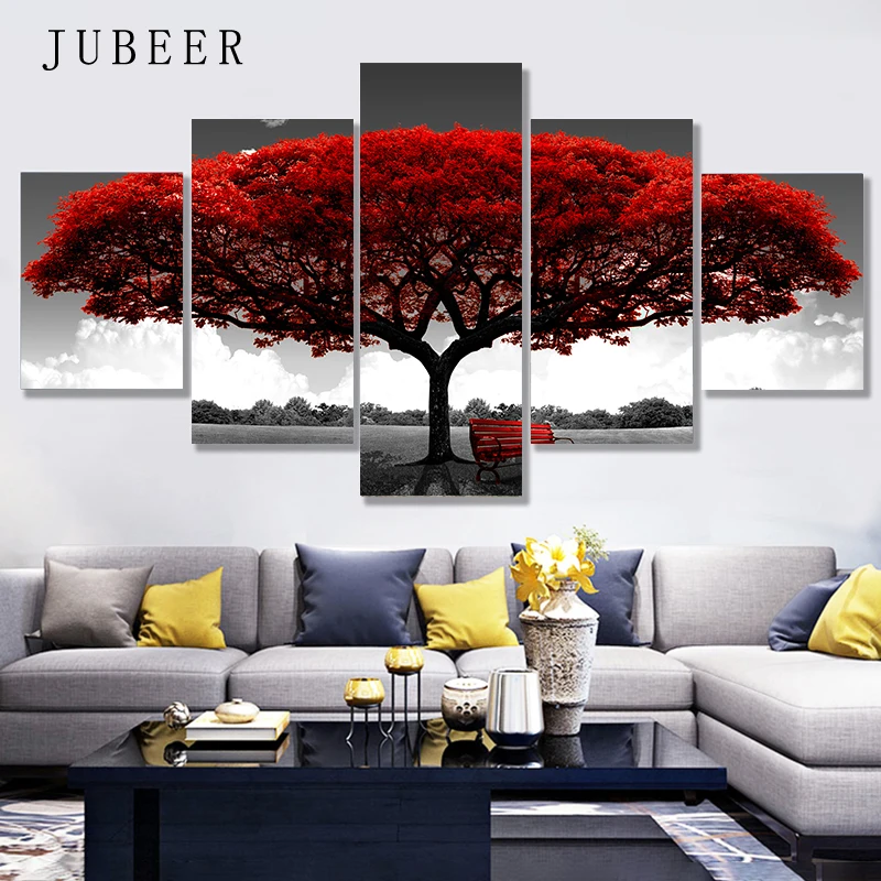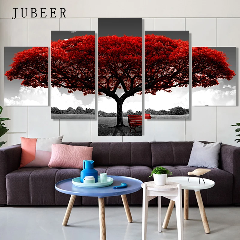 Модульный холст, печать высокого разрешения, постеры для домашнего декора, настенные картины, 5 штук, красное дерево, пейзаж, картины без рамки