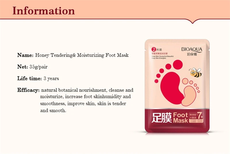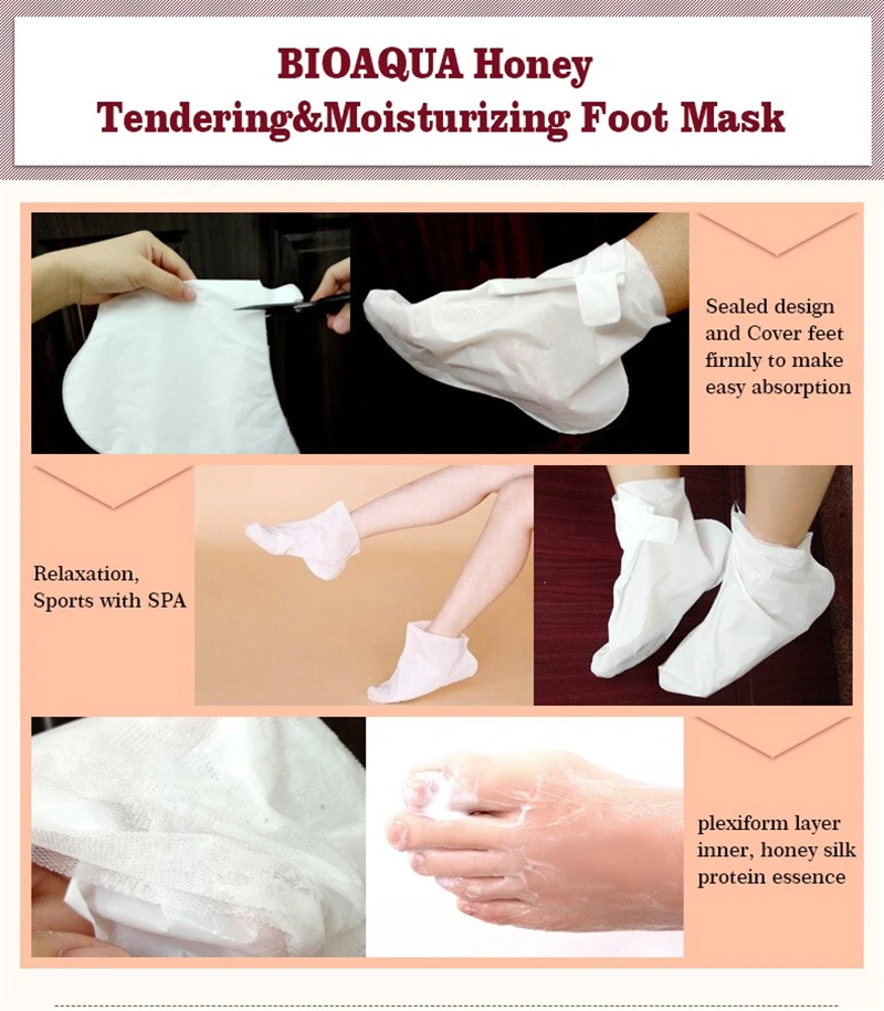 Маска-пилинг BIOAQUA увлажняющая для ног, отшелушивающие носки с медовым для ступней спа педикюр для удаления омертвевшей кожи ног, 10 шт. = 5 пар