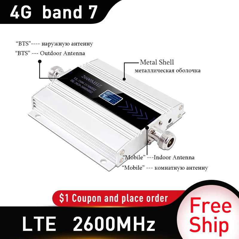 Россия сотовый усилитель 2600 МГц 4G Мобильный усилитель сигнала повторитель 4g сигнал 2600 ретранслятор сотовый усилитель 4G антеннаДиапазон частот LTE 2600 МГц:Подключение: 2500-2570 МГцDownlink: 2620-2690 МГцКоэффициент усиления: 75 дБКак работать:1. Наружная антенна (антенна Yagi) получает сигнал от базовой станции.2. Затем отправляет сигнал ретранслятору через длинный кабель3. Ретранслятор получает сигнал и улучшает его.4. После этого сигнал в внутреннюю антенну (панель/потолок/штыревая антенна), наконец, ваш мобильный телефон будет улучшаться.