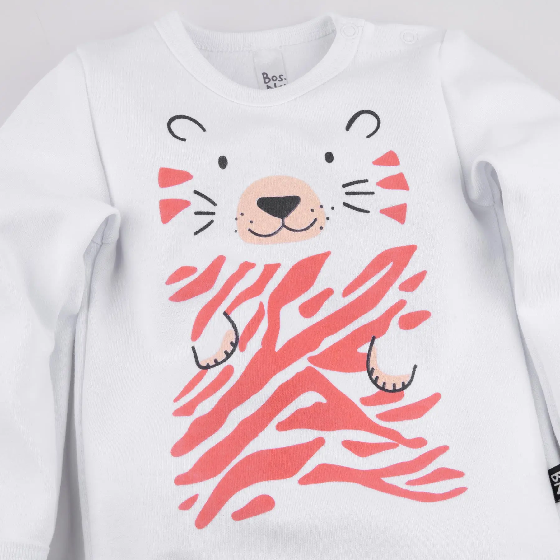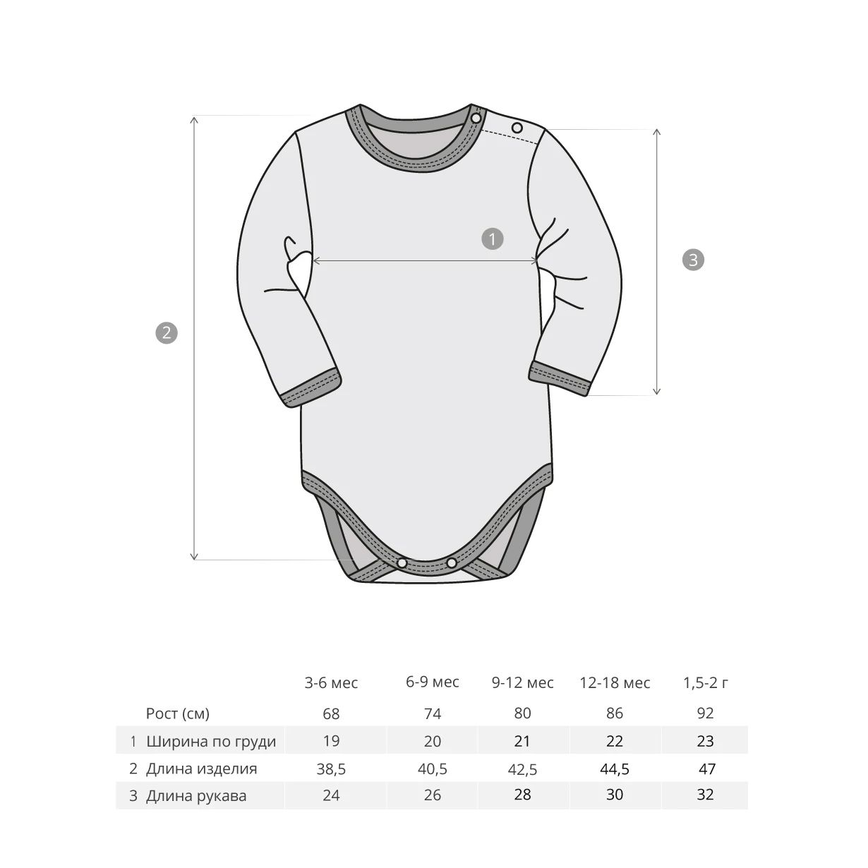 Боди Bossa Nova с длинным рукавом выполнен из интерлока. Детали: принт, застежка на кнопки на плече и по низу изделия.
