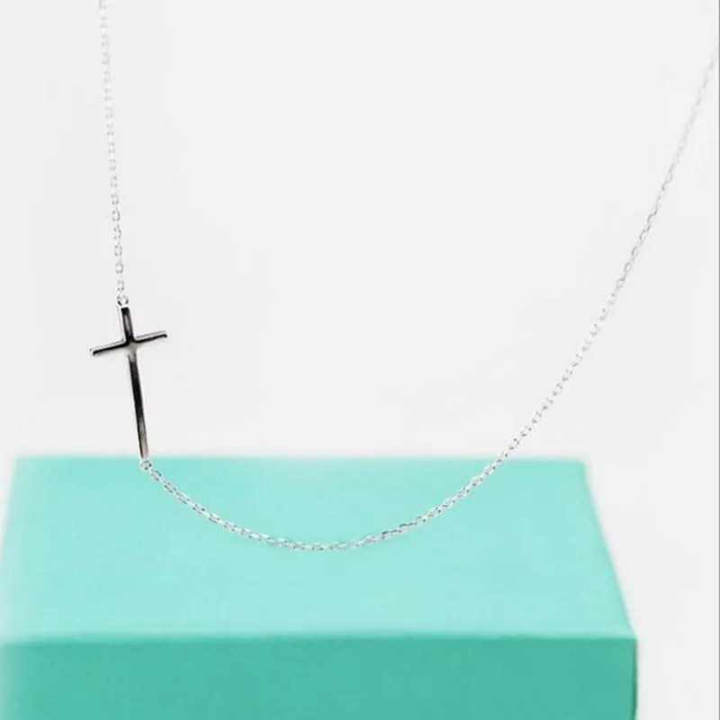Ожерелье из стерлингового серебра 925 пробы женское короткое ювелирное изделие с крестом милое простое ожерелье с подвеской