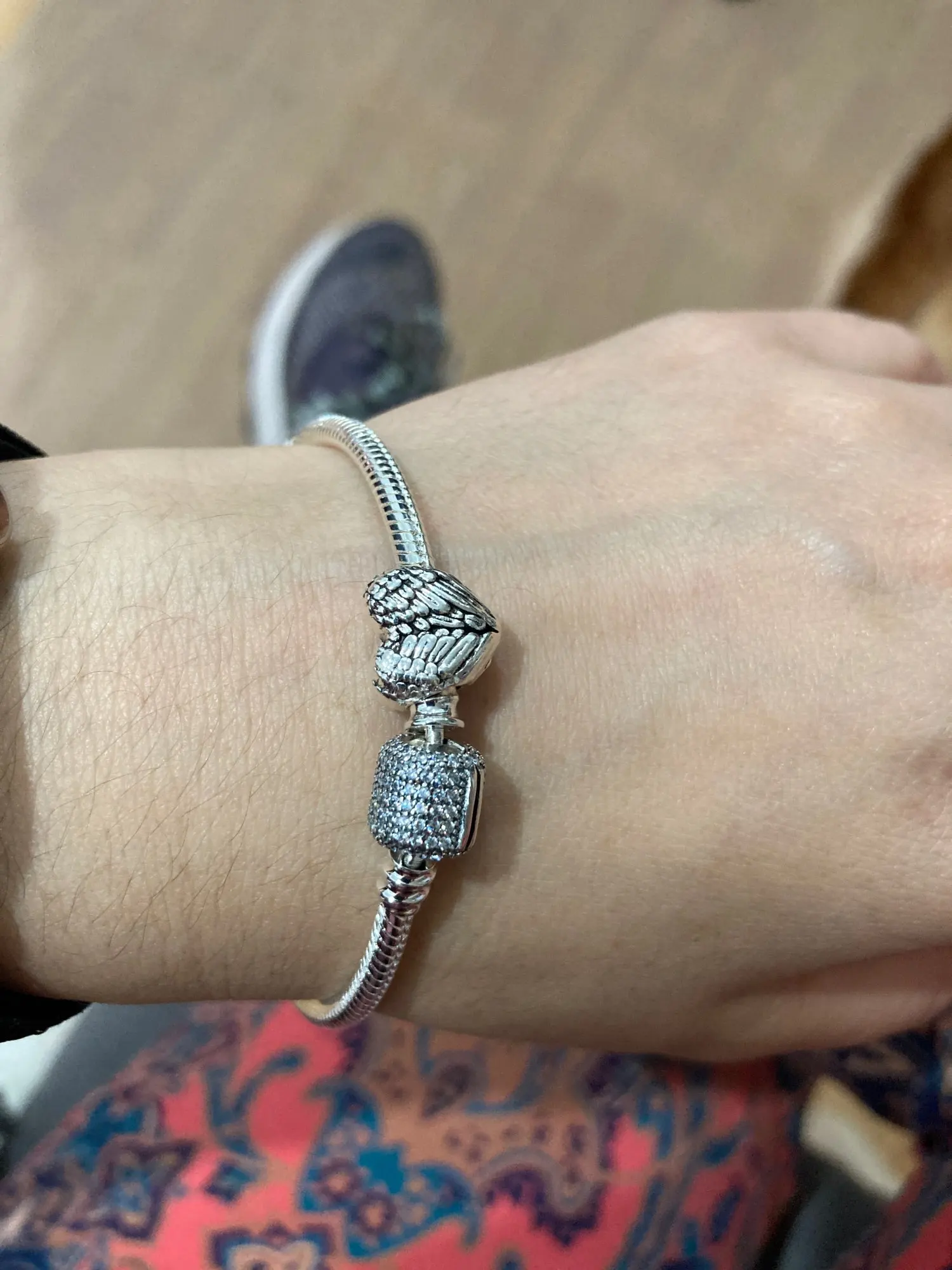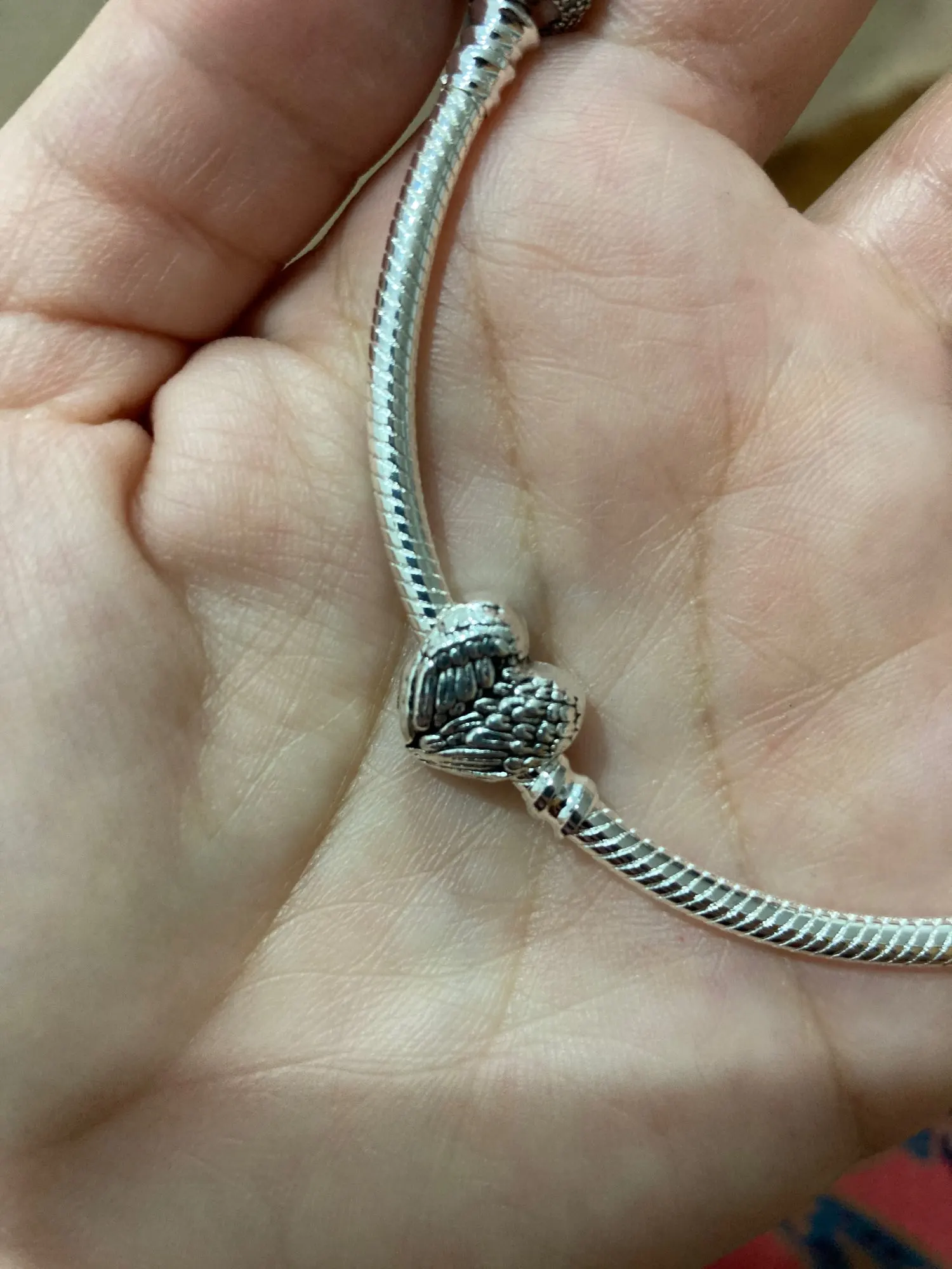 there is a bit much tension on the bracelet. almost as stif as a bangle when worn. cute angelwings heart bead as a gift.