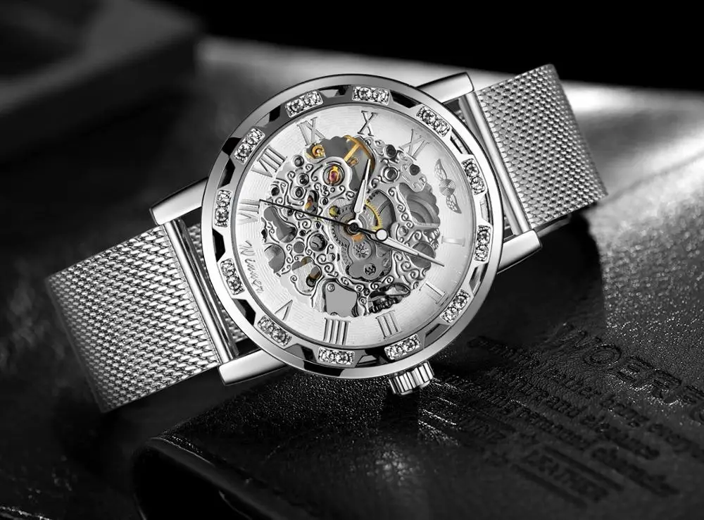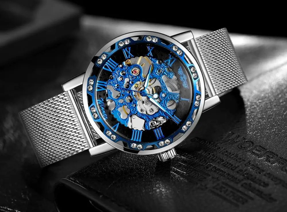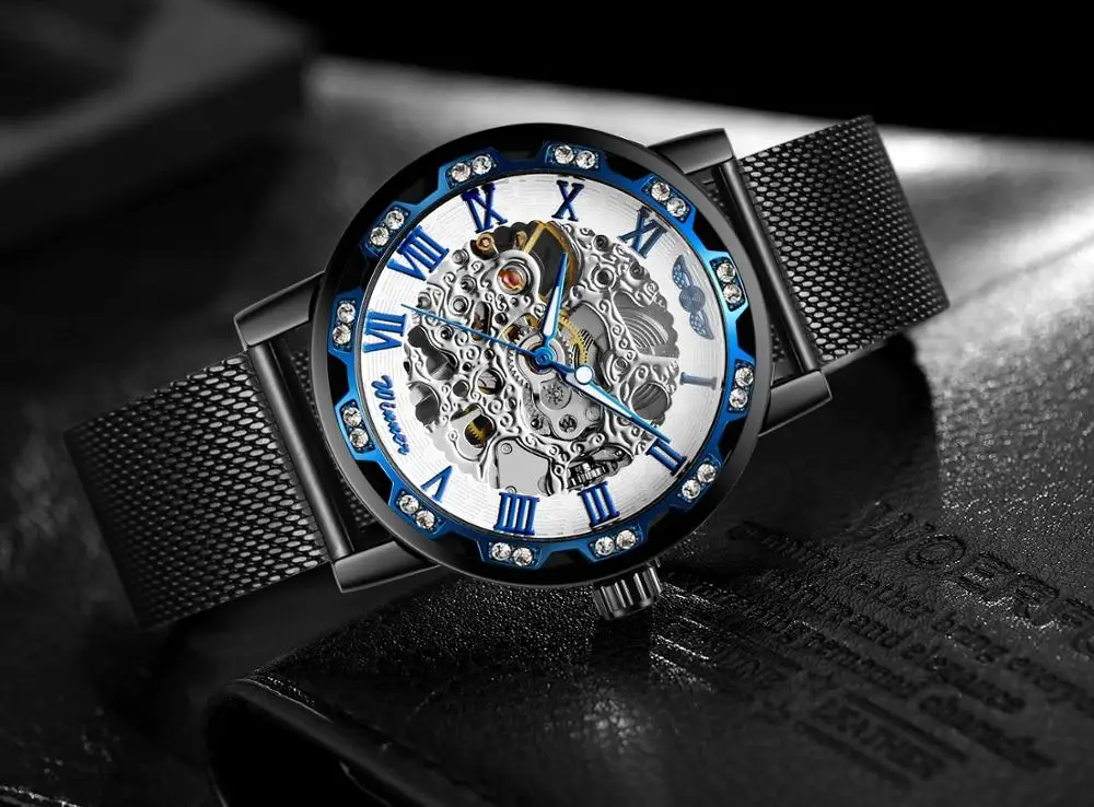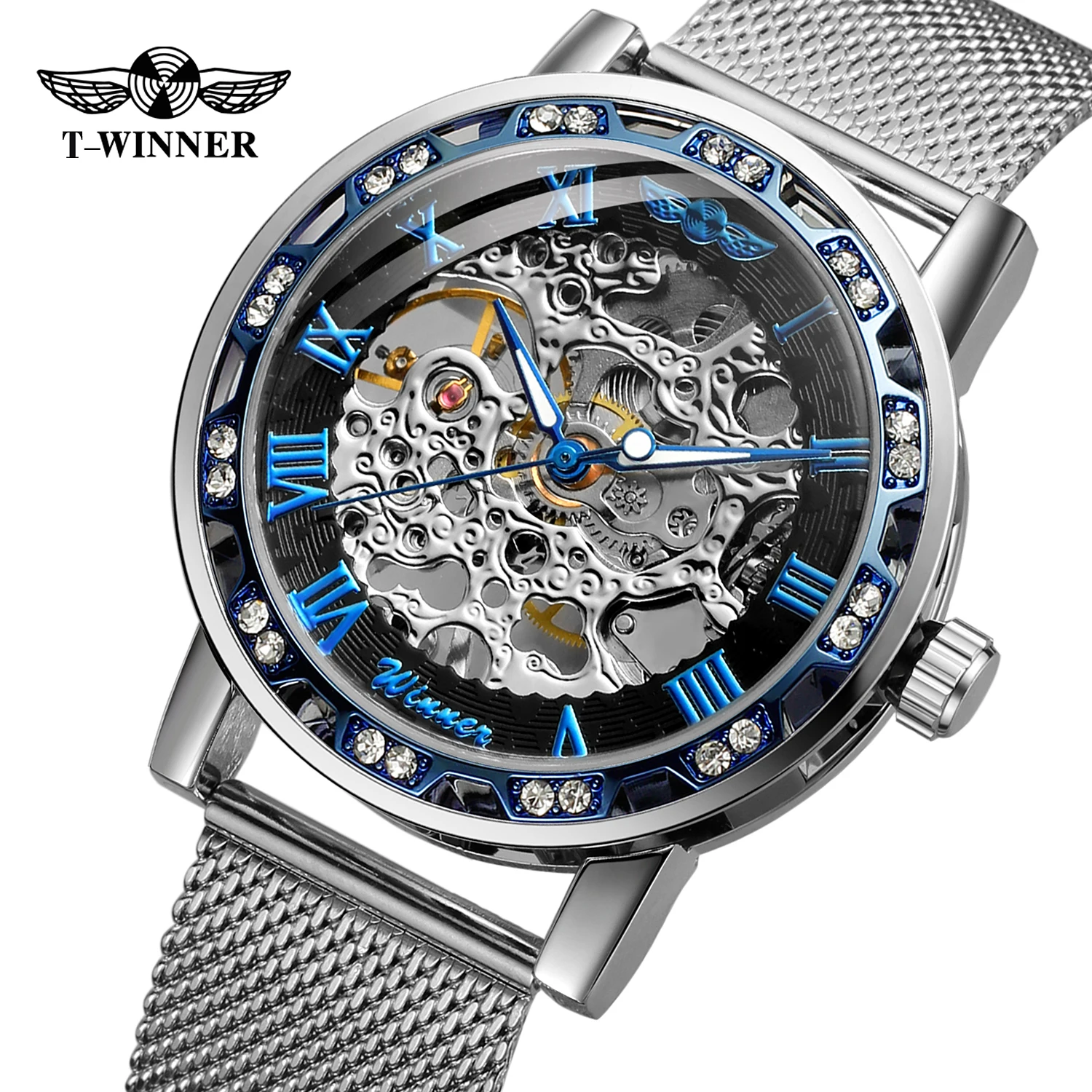 Часы наручные Winner Мужские механические, прозрачные модные светящиеся брендовые роскошные часы-скелетоны в Королевском дизайне, со стразами