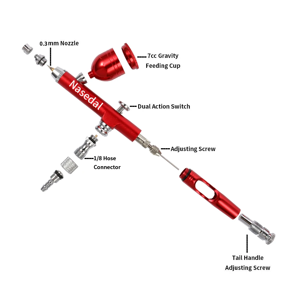 Красно-Золотой Аэрограф Двойного действия с гравитационной подачей, 0,3 мм Насадка, распылитель, кисти для украшения тортов, для маникюра ногтей с гаечным ключом
