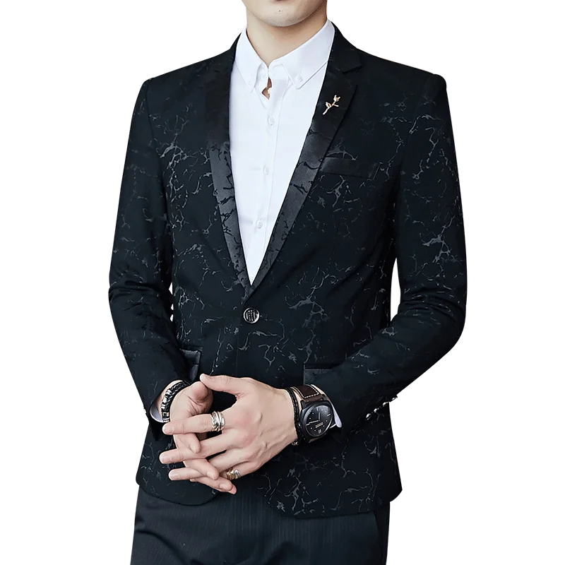 Мужской Жаккардовый блейзер с контрастным воротником, красный, черный, синий Блейзер, приталенный пиджак с блестками, мужское Клубное платье для выпускного вечера, костюм-смокинг, куртка