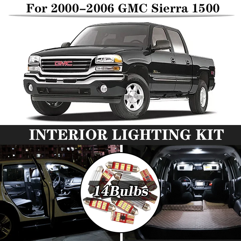 14x Canbus безошибочный светодиодный светильник для интерьера комплект посылка для 2000-2006 GMC Sierra 1500 2500HD 3500HD автомобильные аксессуары Карта Купол багажник лицензионный светильник