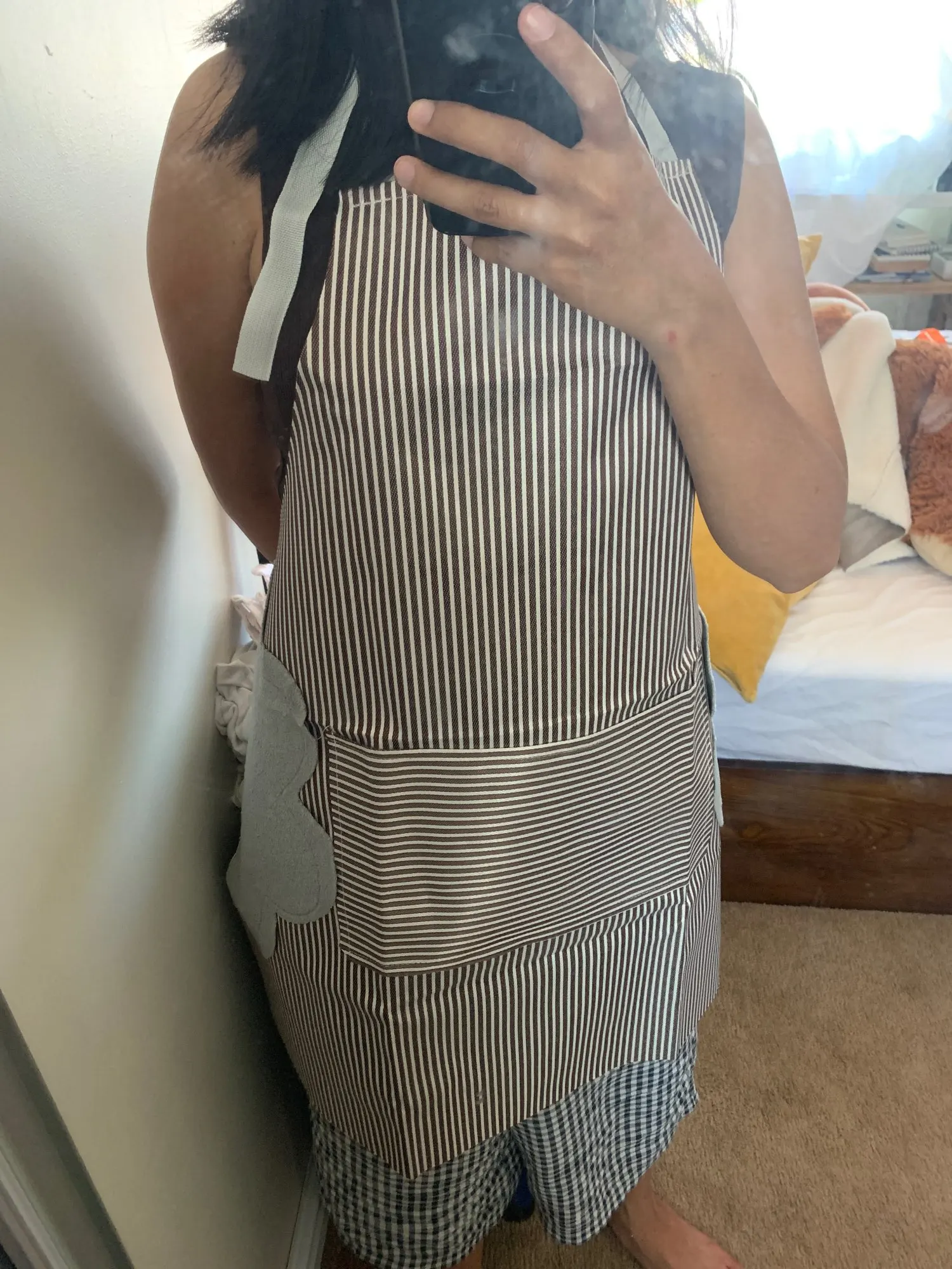 Фартук получился великолепным. Он защищен от проливов и имеет хороший размер кармана и прикрепленные к нему ручные полотенца. Плюс фартук можно отрегулировать вертикально, что действительно потрясающе!