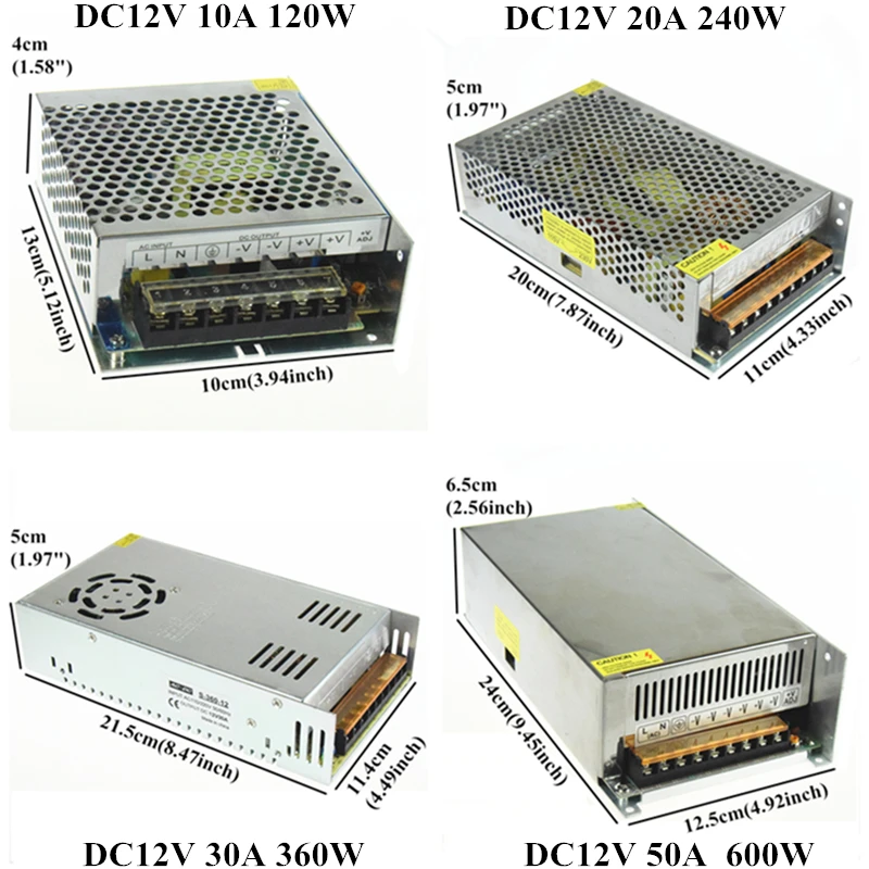 Источник питания постоянного тока 12 В 12 Вт 24 Вт 36 Вт 60 Вт 120 Вт 240 Вт 600 Вт трансформатор переменного тока 110 В 220 В в 12 В постоянного тока Светодиодный источник питания с переключением