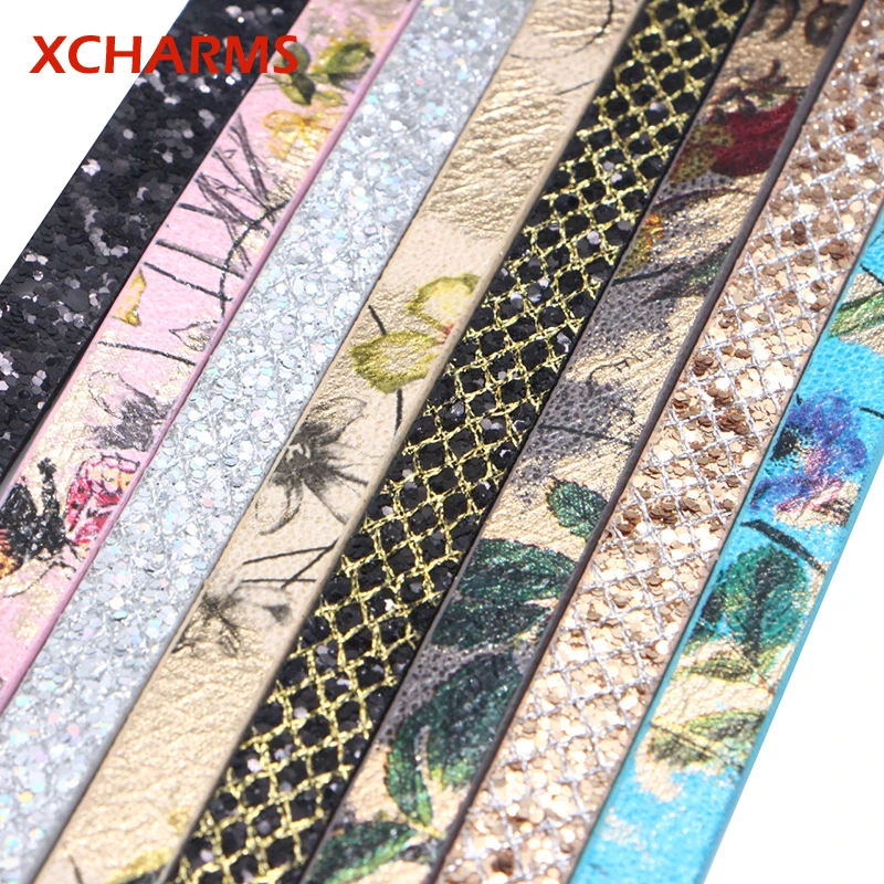 Шнур из искусственной кожи для украшений сделай сам, плоский шнур 10 мм с блестками и жимолостью, материалы для изготовления ювелирных изделий и браслетов