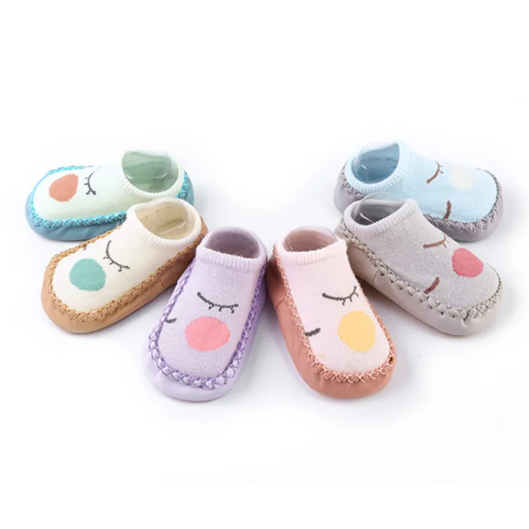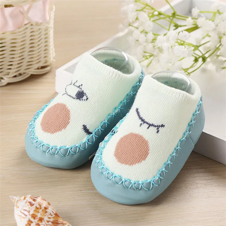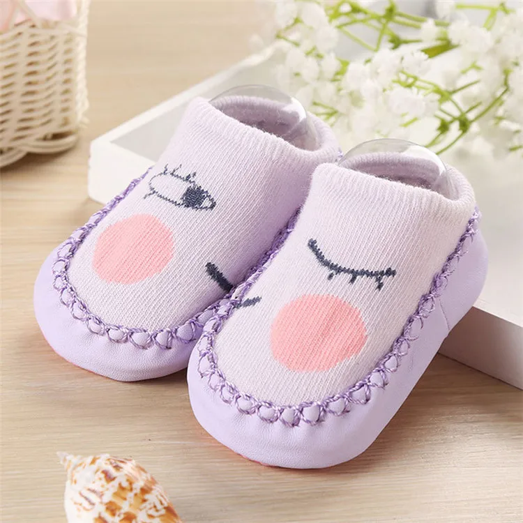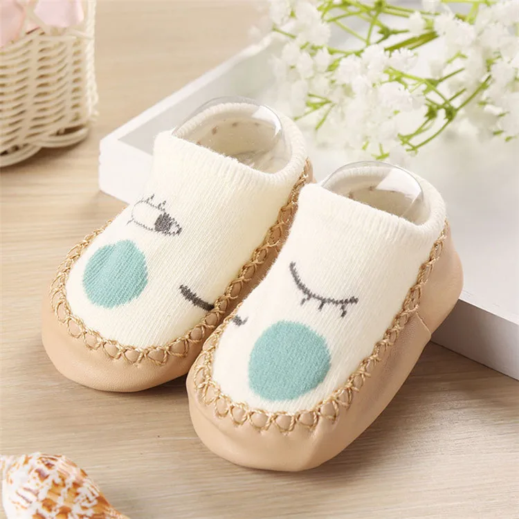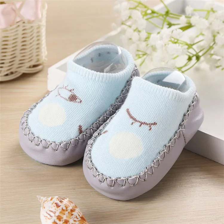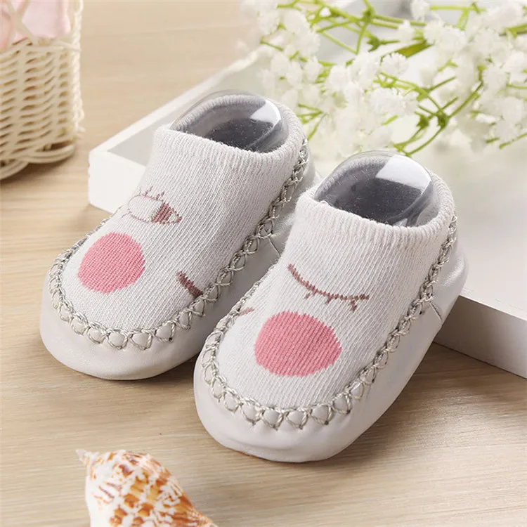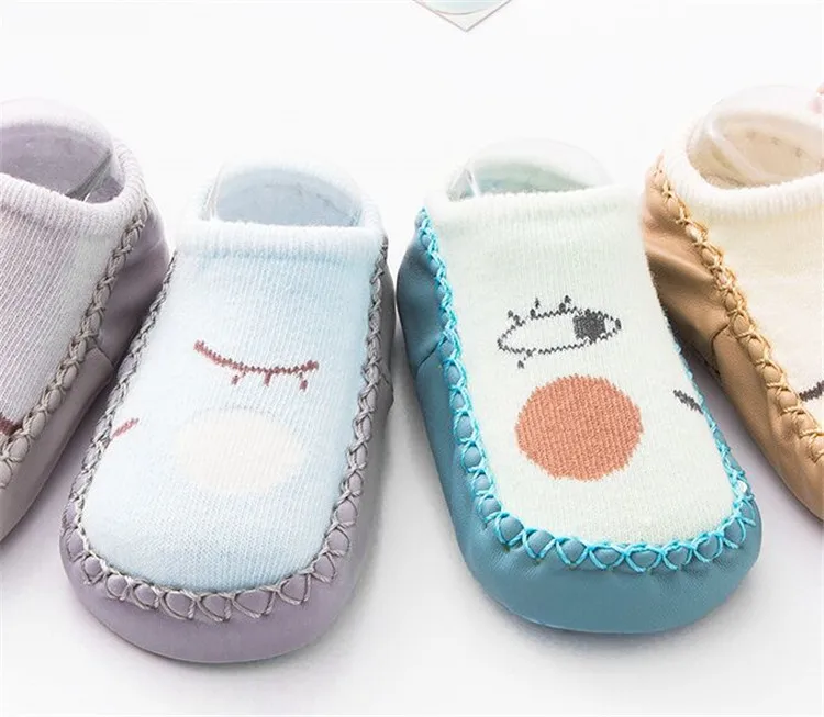 Детские носки с резиновой подошвой, Нескользящие осенние детские напольные туфли для новорожденных девочек