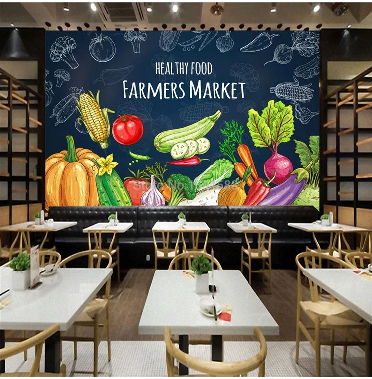 Пользовательские Настенные обои любого размера Ручная роспись Доска креативные фрукты и овощи супермаркет фрукты магазин фон настенные фрески