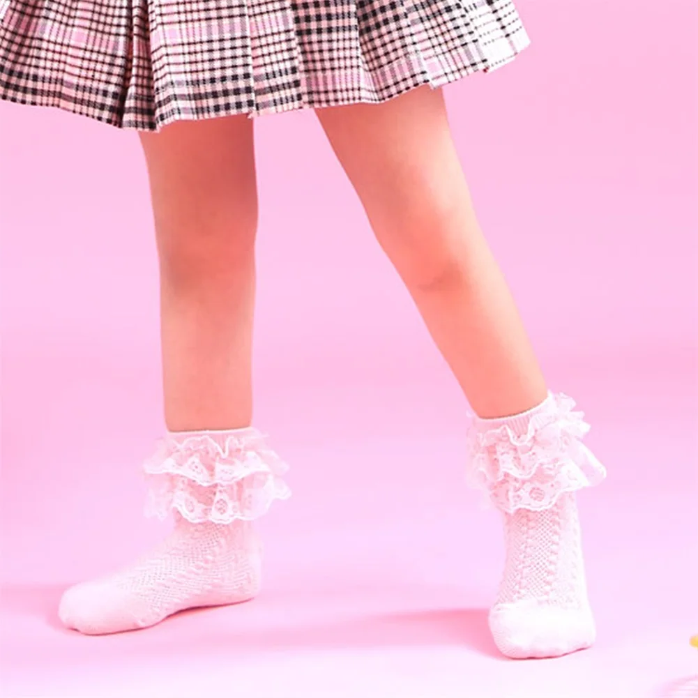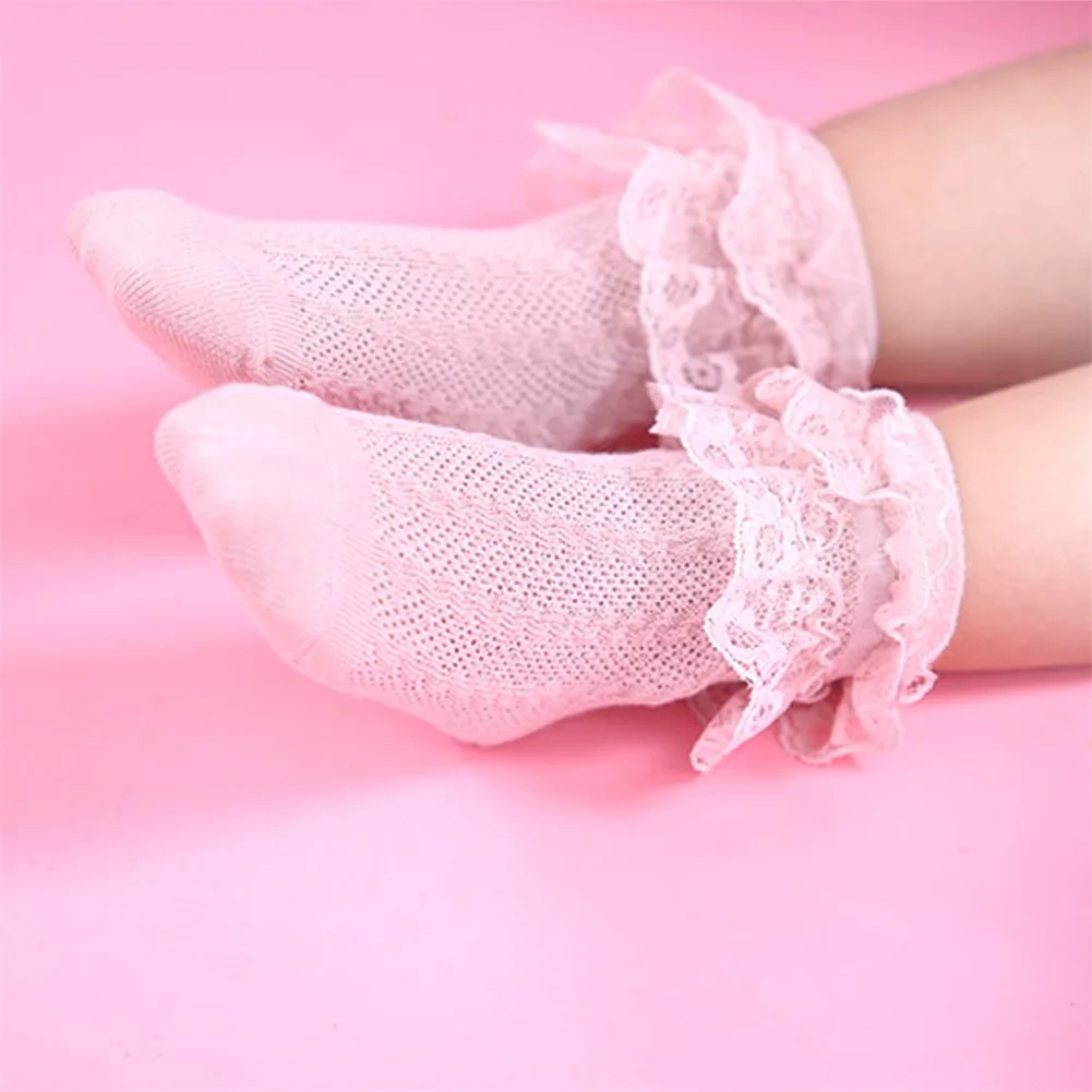 Кружевные носки с оборками для маленьких девочек, летние сетчатые д...