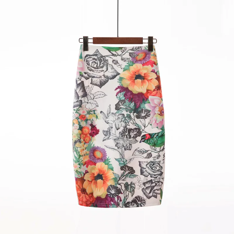 Женская офисная юбка-карандаш, Повседневная Юбка-миди с цифровым принтом, с высокой талией и цветочным принтом, с ремнем, весна 2020