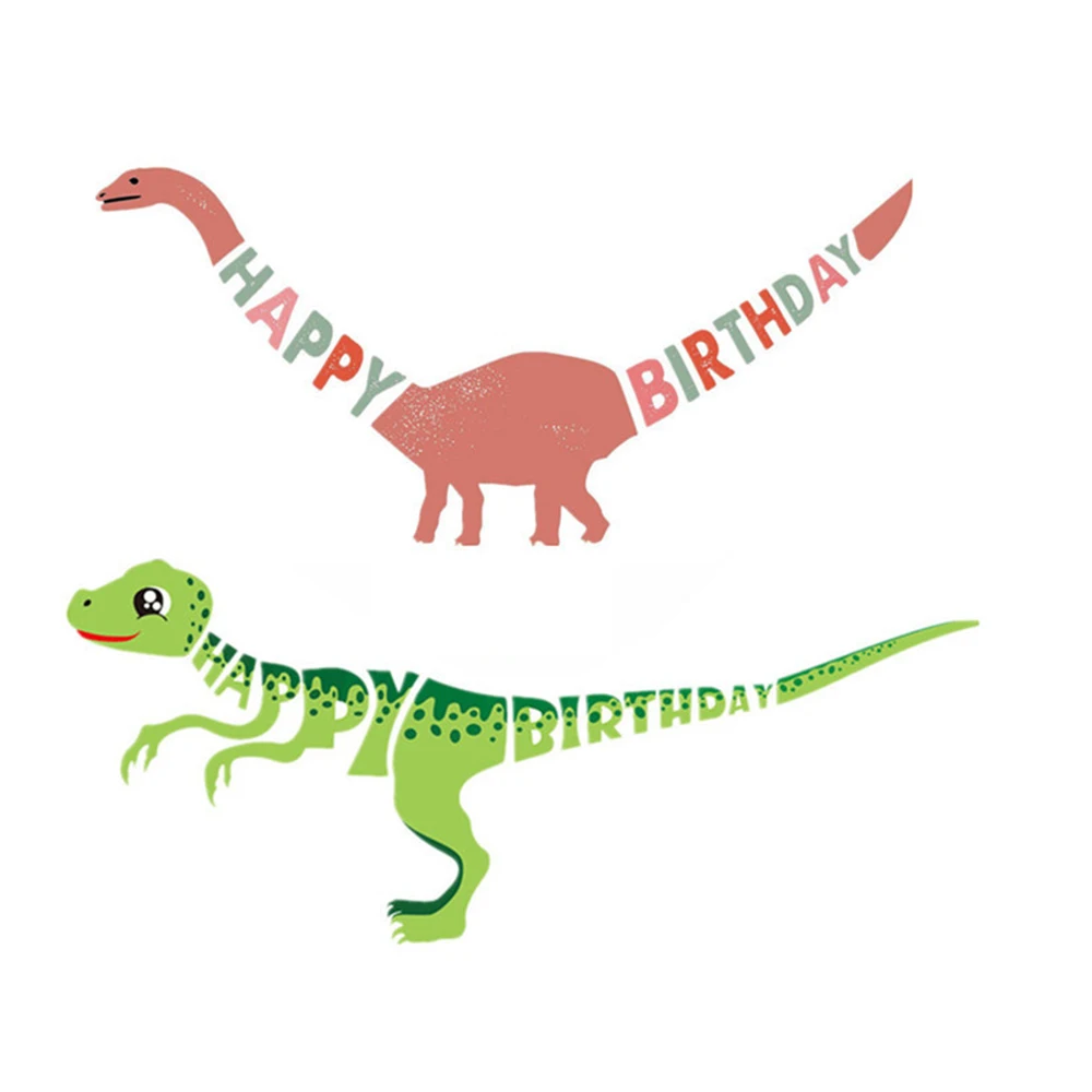 Флажки для мальчиков с надписью на день рождения, гирлянда динозавров, искусственные темы джунглей, домашний декор, товары для детского праздника