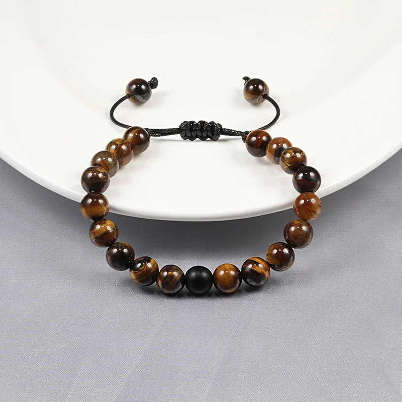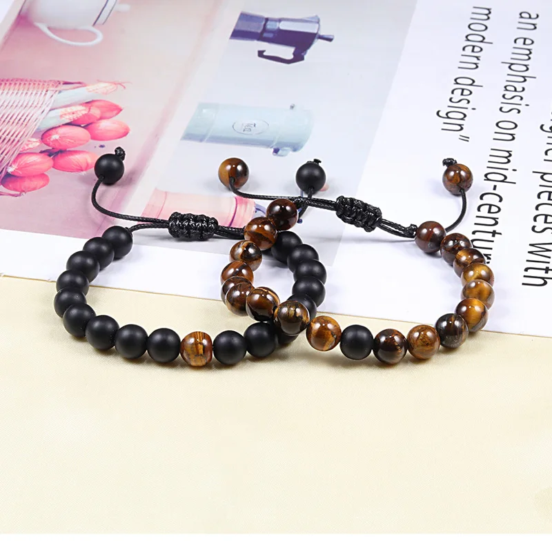 Браслет плетеный из черного матового натурального камня для мужчин и женщин, браслет с бусинами, изящное Ювелирное Украшение для йоги с расстоянием для влюбленных пар, Подарочная бижутерия