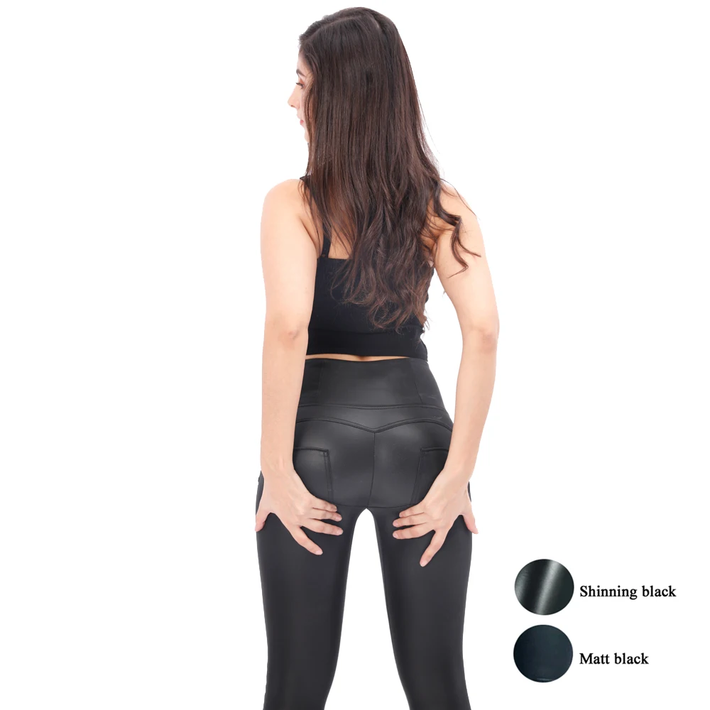 Черные кожаные джинсы Melody с высокой талией, теплая зимняя женская одежда, леггинсы с эффектом пуш-ап, лакированные черные брюки