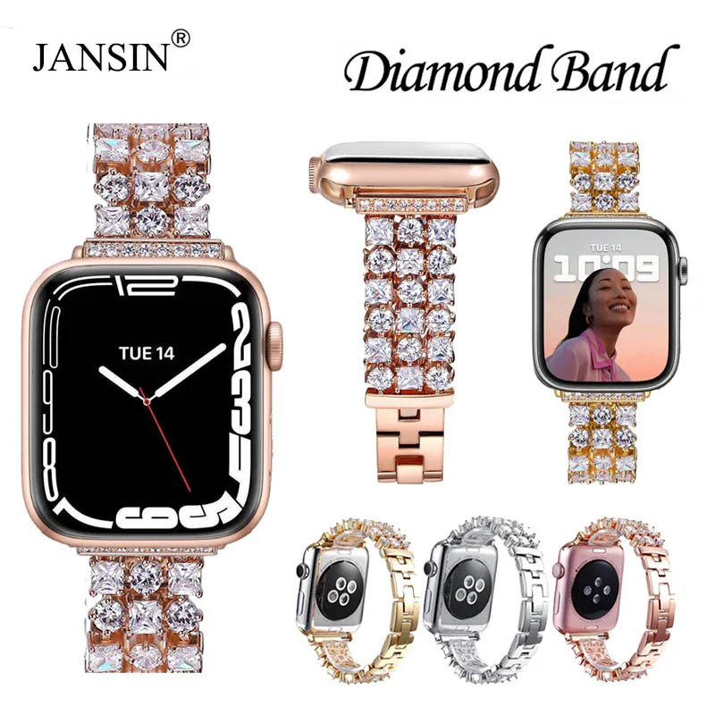 Роскошный металлический ремешок со стразами для Apple Watch Band 7 ...