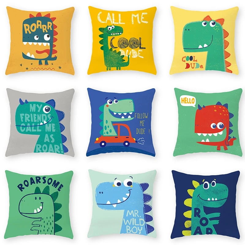 Милый чехол для подушки с принтом динозавра из мультфильма, наволочка для детской комнаты, дивана, кровати, декоративная наволочка