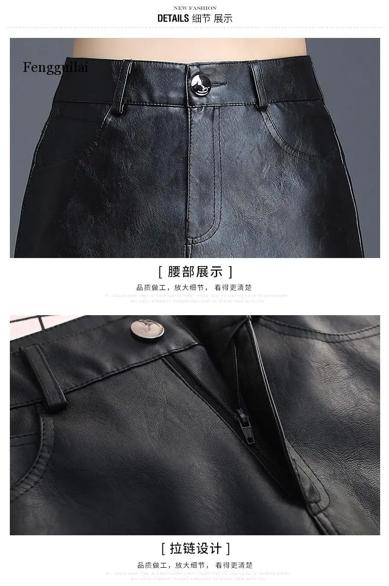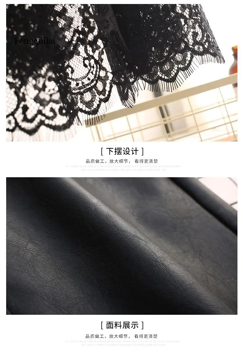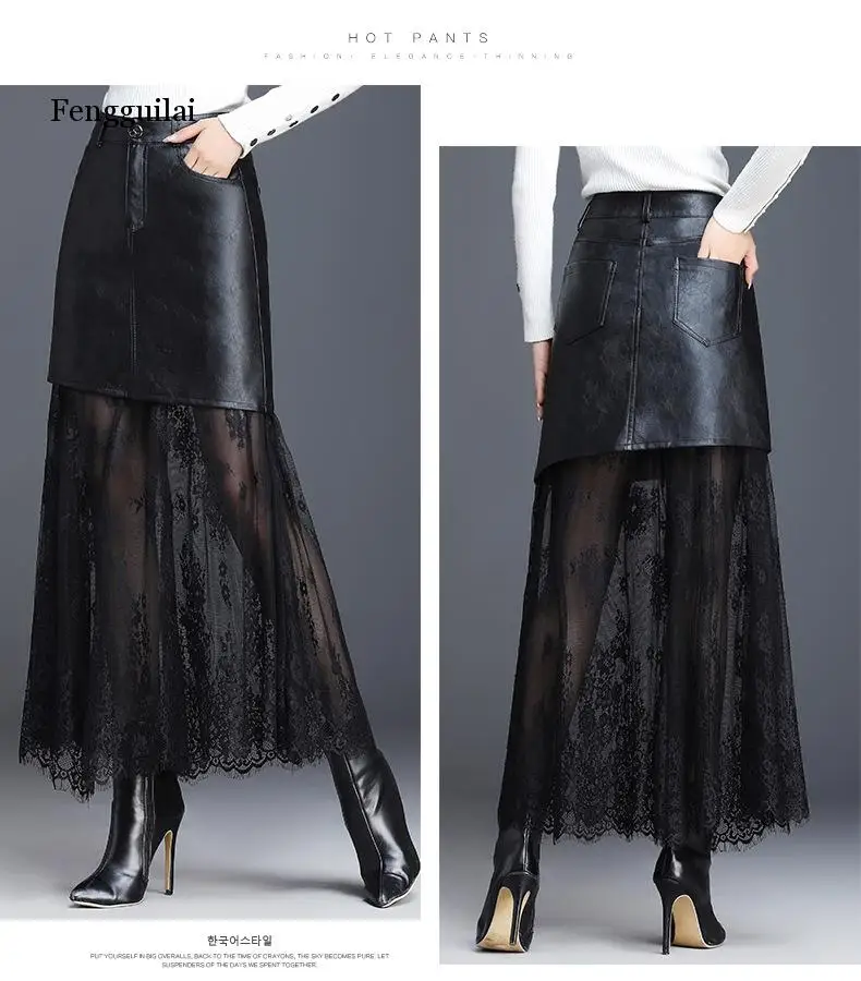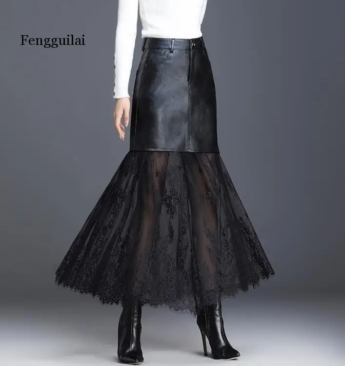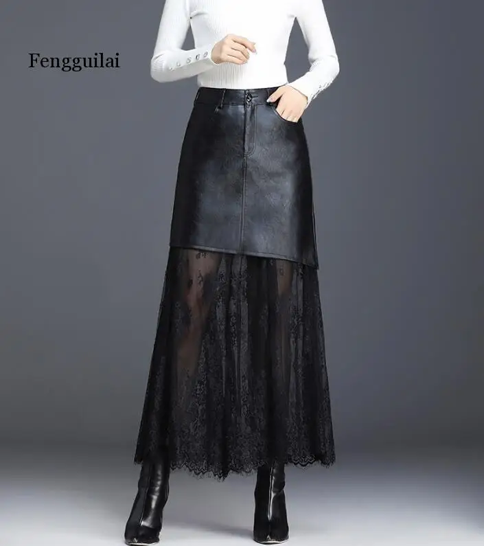 Женская юбка из искусственной кожи Fengguilai, элегантная Свободная юбка до середины икры, с поясом на завязке, Осень-зима