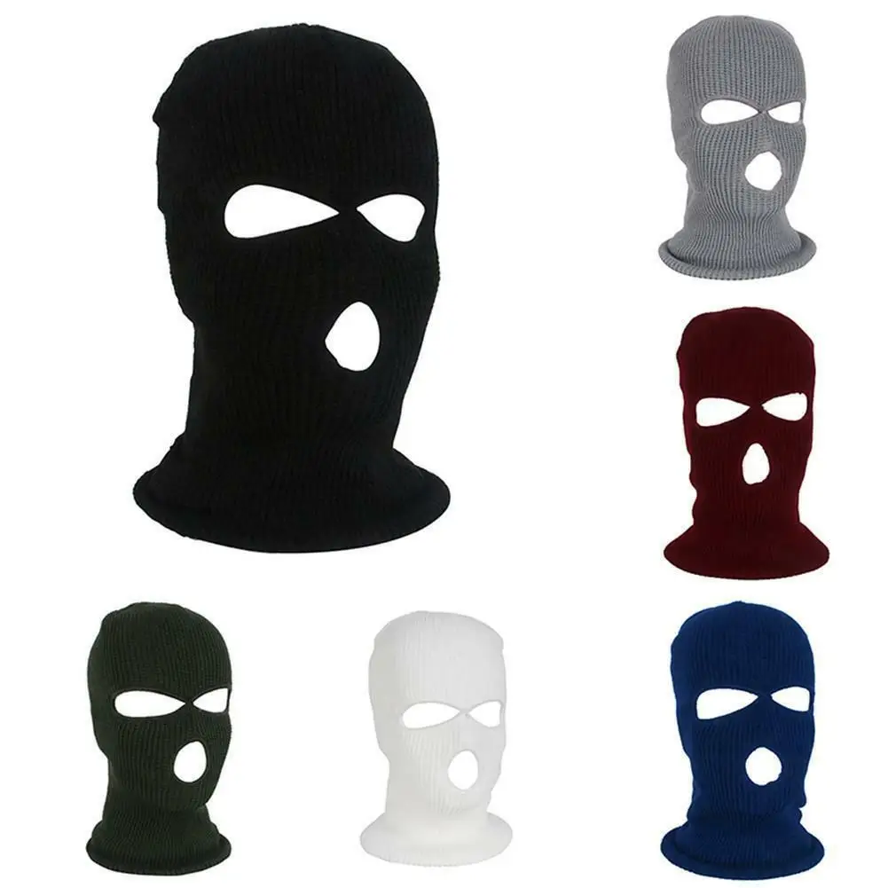 Маска, закрывающая все лицо, вязаная Балаклава с тремя отверстиями,...