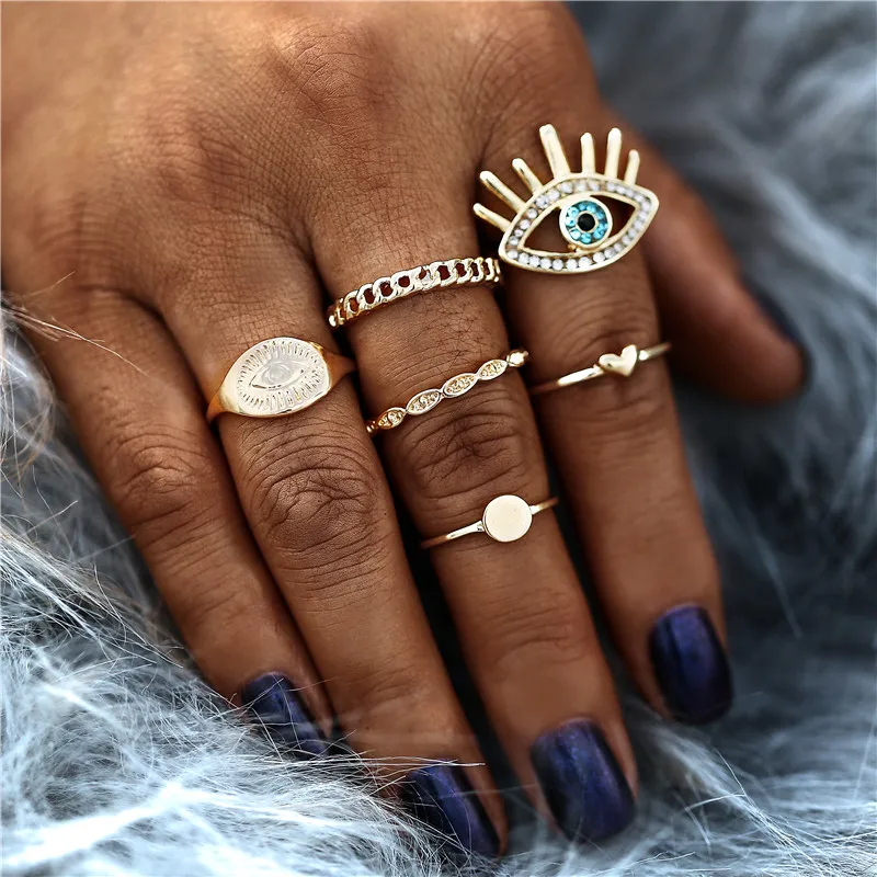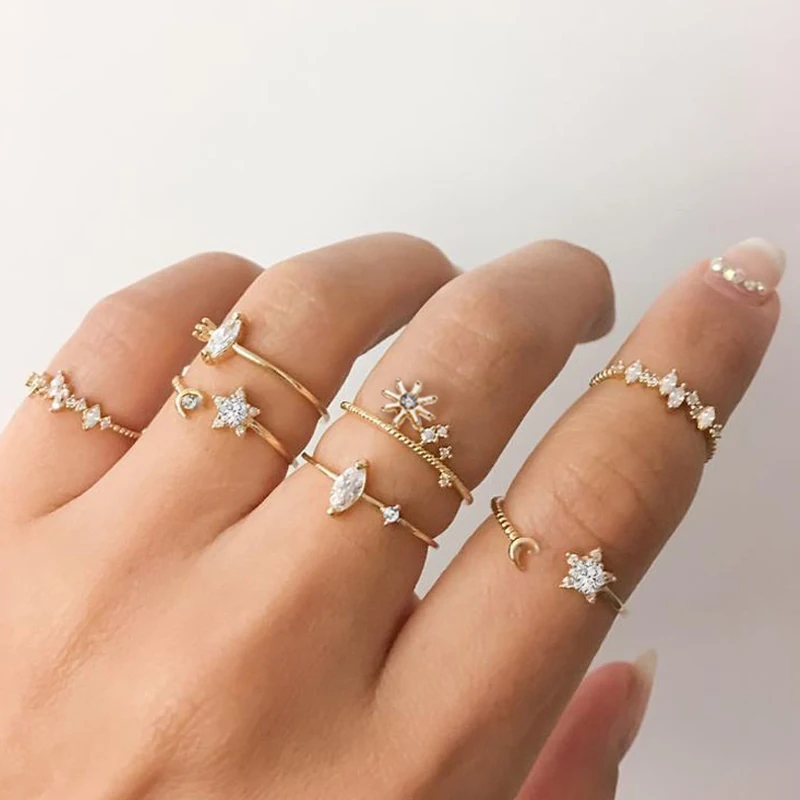 Набор колец в богемном стиле с кристаллами, цветами, глазами, звездами, луной, винтажные открытые кольца на костяшки пальцев для женщин, обручальное кольцо, женские кольца