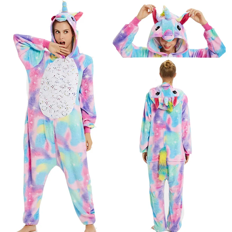 И Единорог, штаны для женщин, Стич, панда, зимние фланелевые пижамы для взрослых ночнушка милый тигр пижамы Тоторо комбинезоны