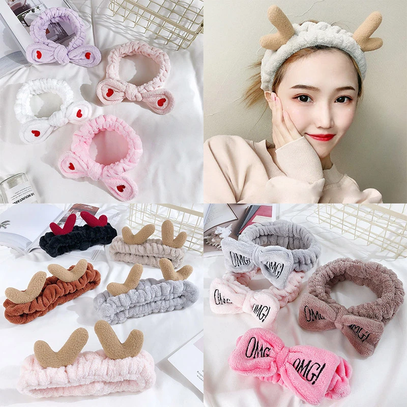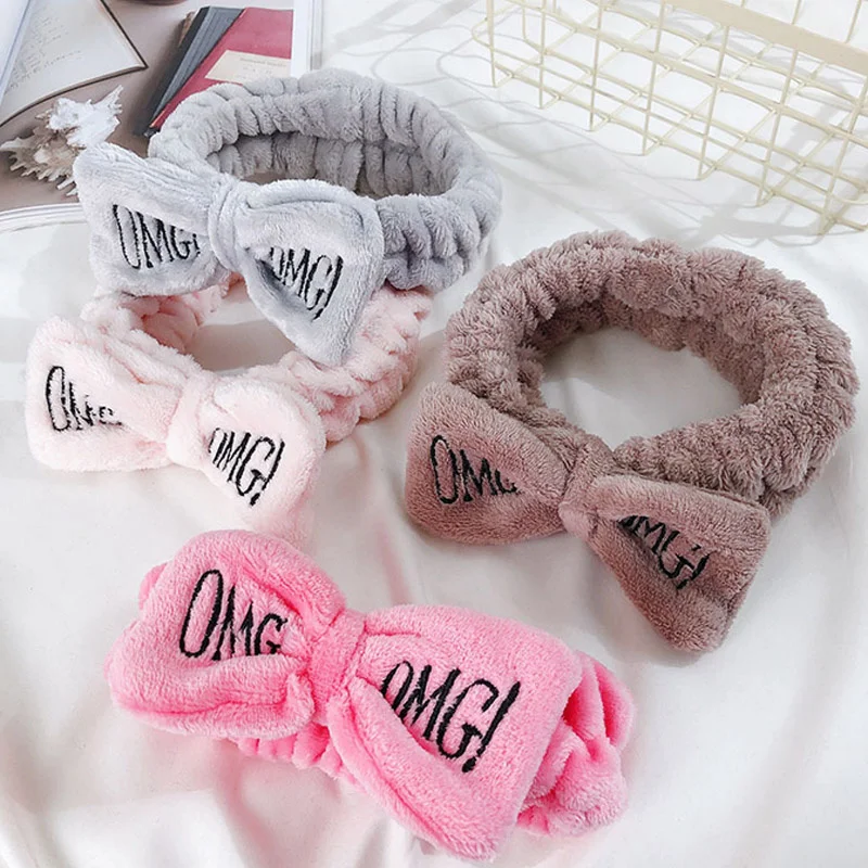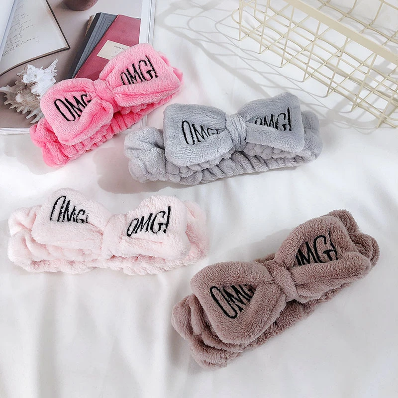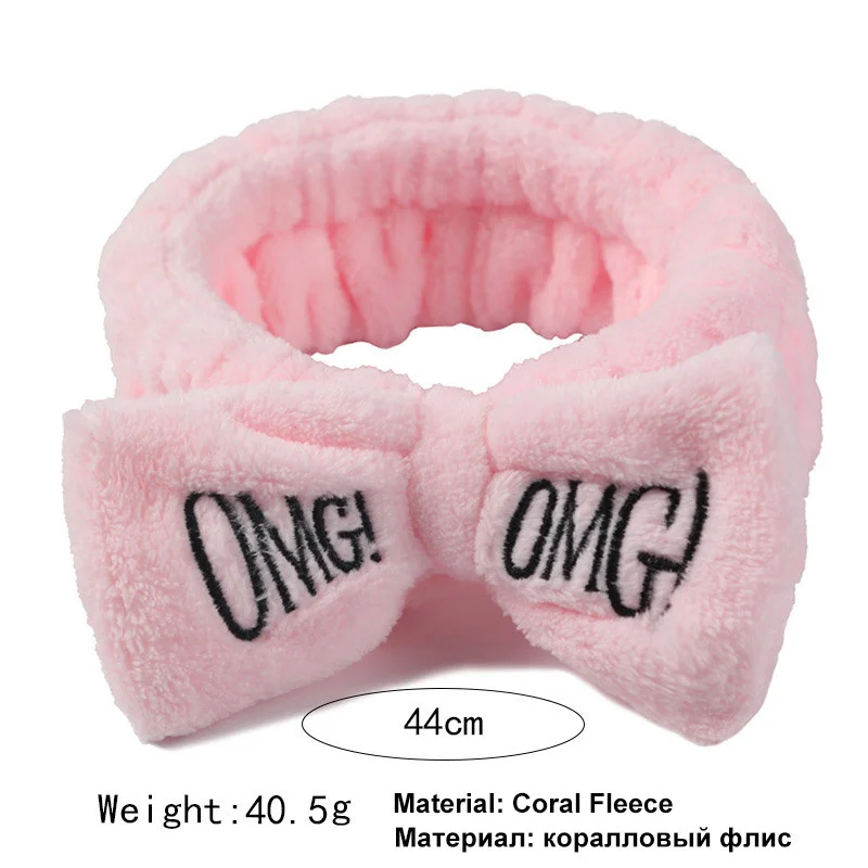 Повязка на голову женская из кораллового флиса с бантом и надписью OMG