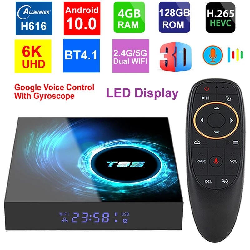 ТВ-приставка T95 6K на ОС Android 10,0, 4 Гб, 128 ГБ, четырехъядерный процессор Allwinner H616, 2,4 ГГцтелефон, двойной Wi-Fi, H.265, HDR, BT4.1, 6K Смарт ТВ-приставка