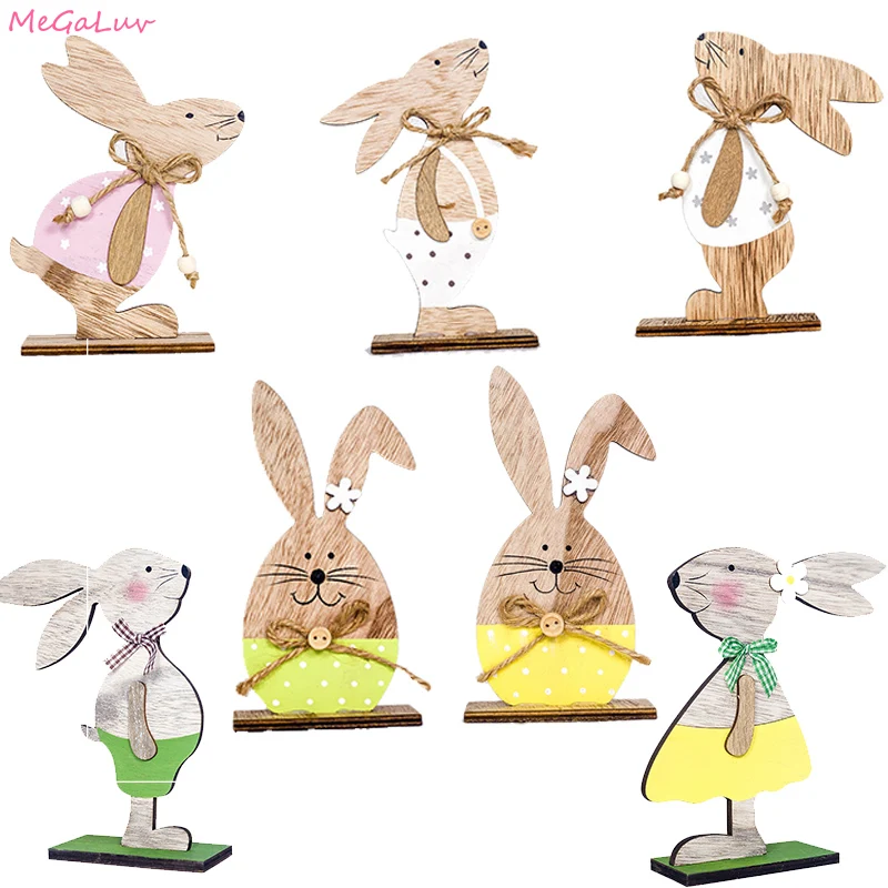 1 шт., мультяшный кролик, деревянные пасхальные украшения, кролик, кукла, счастливая Пасха, вечерние, настольные украшения, поделки, домашние детские игрушки, подарок