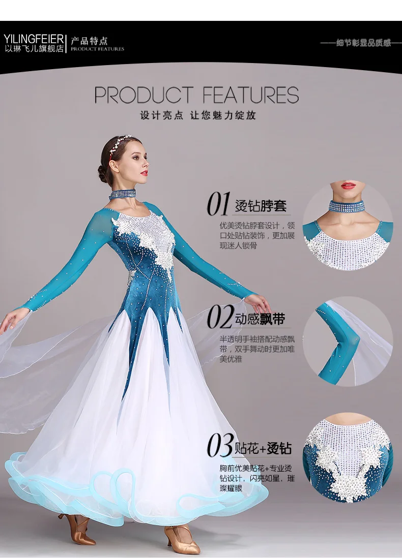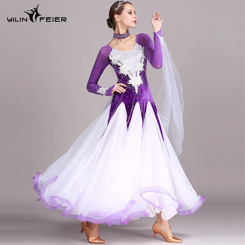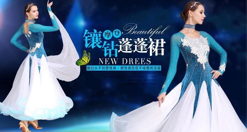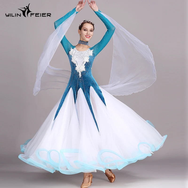 Женское платье для современных танцев, одежда для бальных танцев, стандартный костюм для бальных танцев для выступлений, платье феи, вальса, со стразами, S7017
