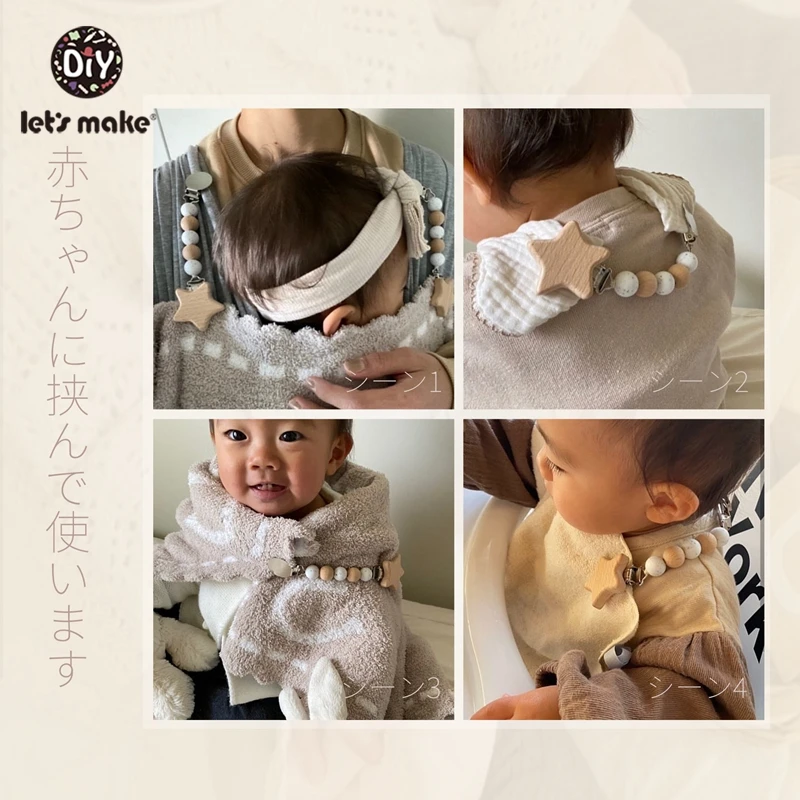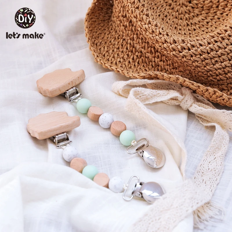 Детский зажим для соски Let's Make, натуральный деревянный зажим дл...