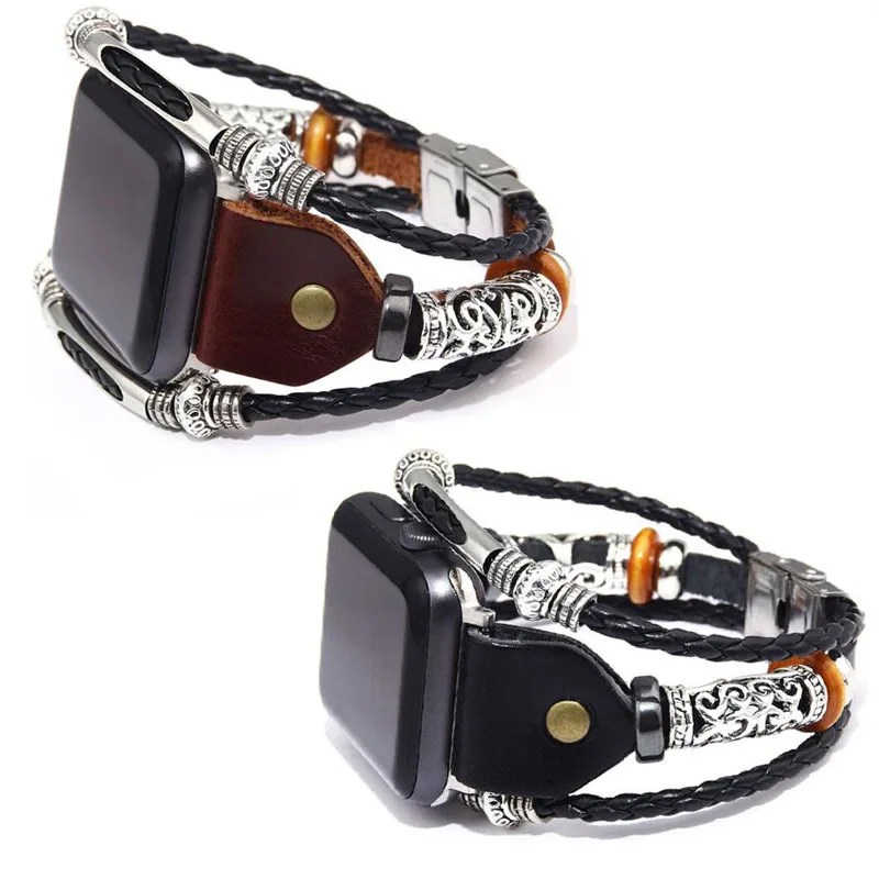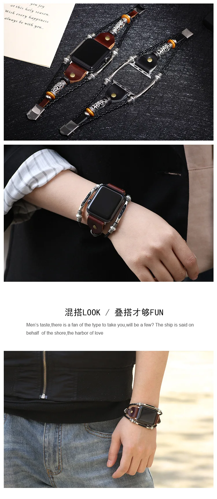Винтажный кожаный браслет с бусинами Kirykle для Apple Watch серии ...