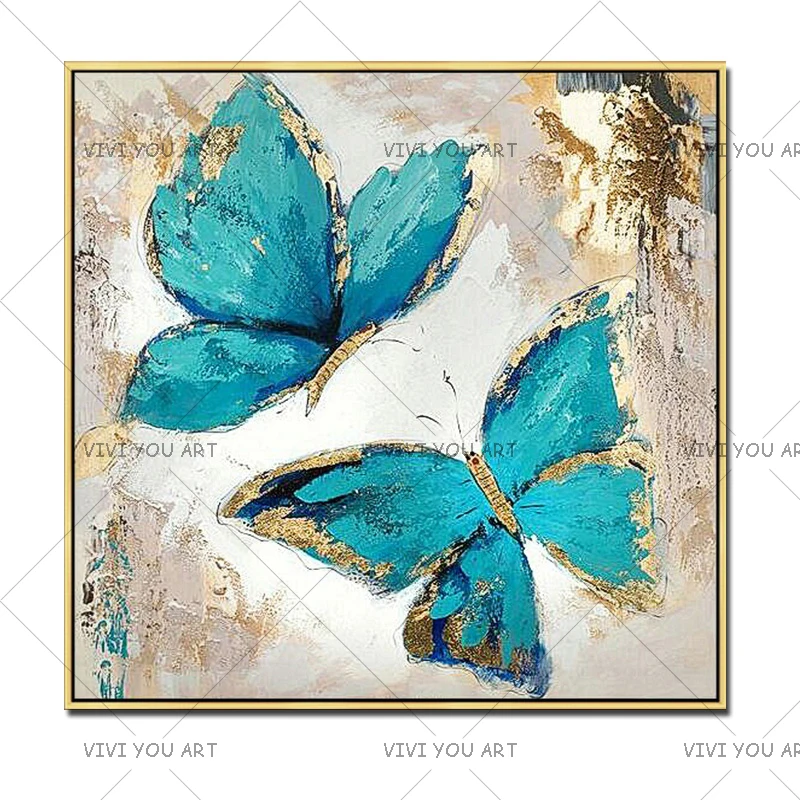 Абстрактная картина маслом ручной работы с изображением золотой бабочки на холсте, абстрактные картины ручной работы для декора гостиной, настенные художественные картины