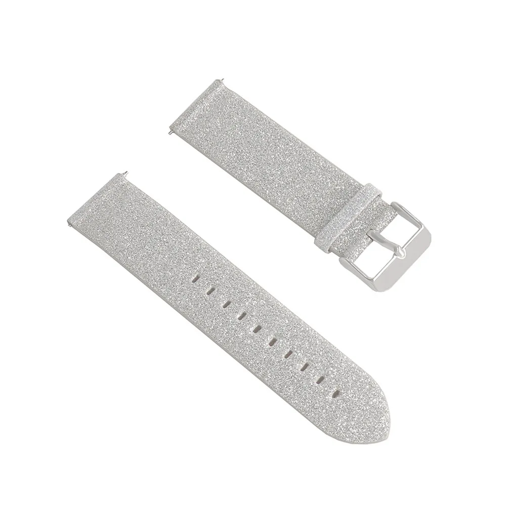 100% новый и высококачественный сменный кожаный ремешок. Роскошные блестящие украшения с кожаным ремешком делают ваши умные часы стильными, красивыми и привлекательными Материал ремешка: блестящий материал + натуральная кожа Металлическая пряжка и разъемы из нержавеющей стали.Приходят с быстрое освобождение шпильки, просты в установке и снять Спереди: 2D плоская и 3D Маленькая поверхность; Сзади: глянцевая Удобная кожа. Легко отрегулировать длину ремня, подходит для размера запястья 5,5 "-8,0" (140-203 мм)Совместимость с:20 мм ширина ремешка Подходит для: Samsung Gear Sport R600/S2 classic R732 /galaxy watch 42 мм/Galaxy watch active /active2
