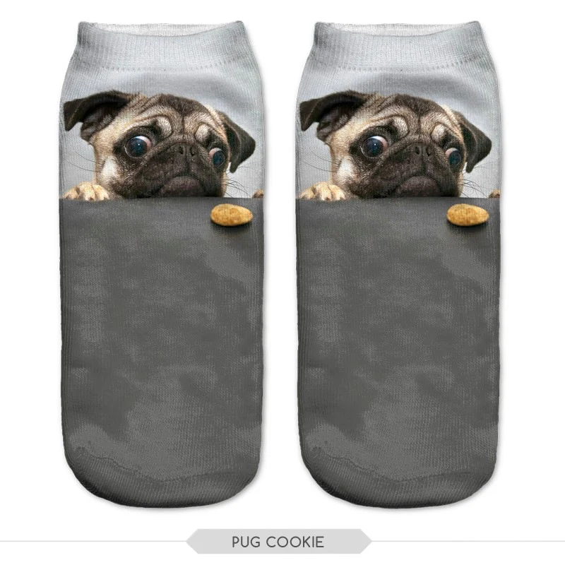 Модные забавные носки с объемным принтом собаки милые короткие носки унисекс для взрослых хлопковые повседневные чулочно-носочные изделия Индивидуальность короткие носки для пар
