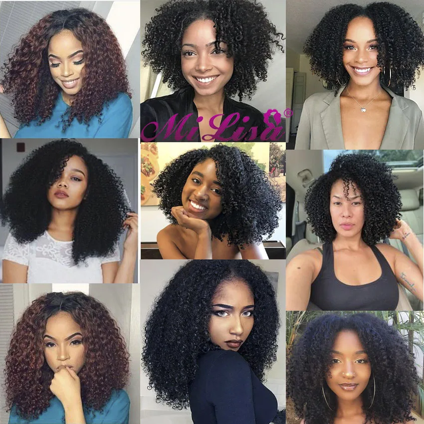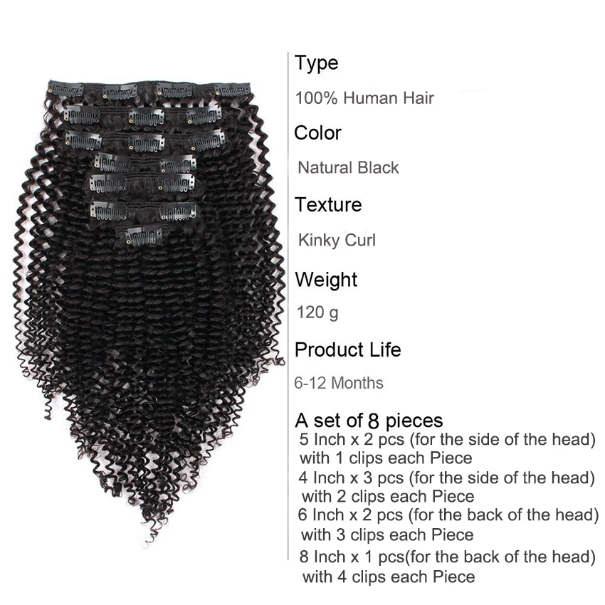 Афро кудрявый вьющиеся клип в Пряди человеческих волос для наращивания бразильские пряди на заколках для наращивания-Ins, комплект на всю голову 8 шт.компл. 120 г Волосы remy Mi Лиза Nautral Цвет 3B 3C
