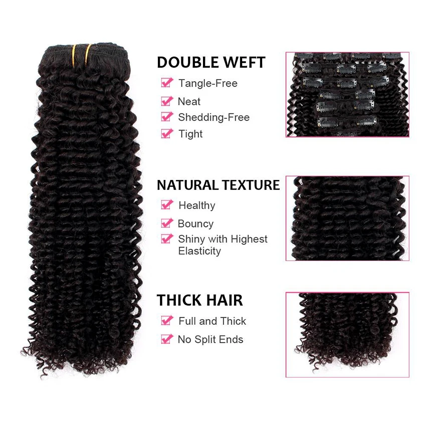 Hair Typekinky curly clip ins clip in human hair extensions