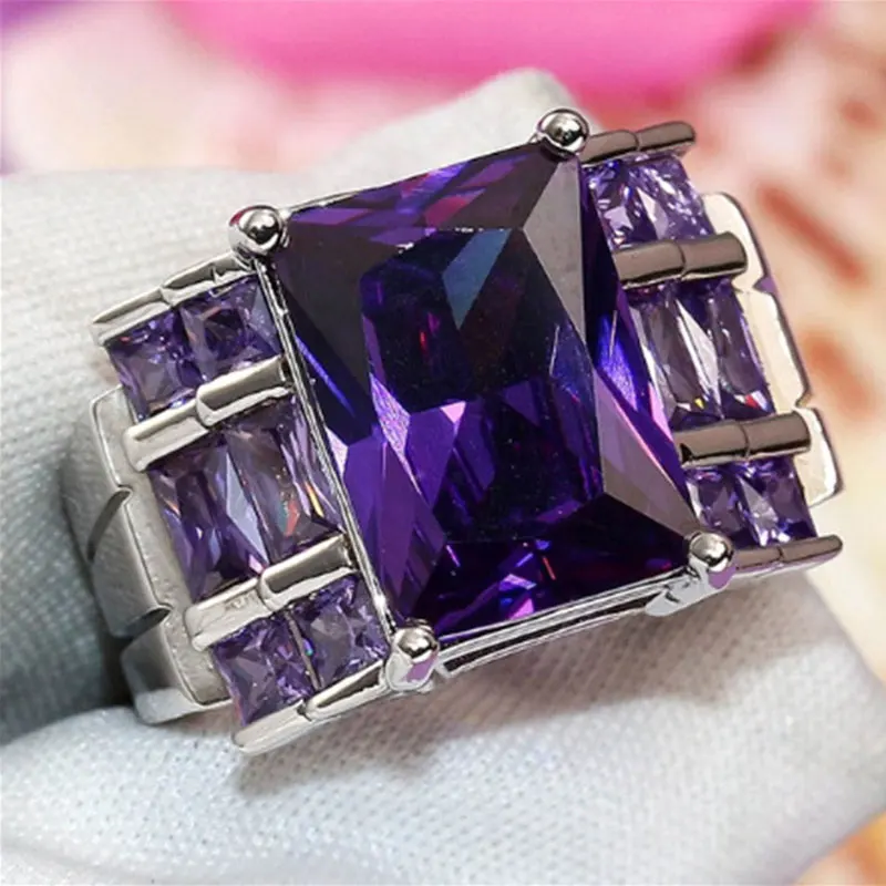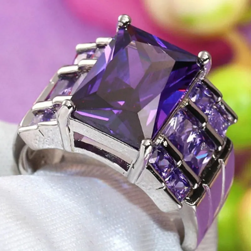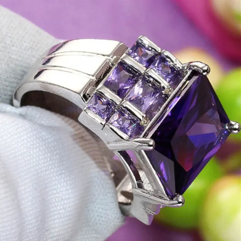 Роскошное обручальное кольцо, романтическое женское кольцо с фиолетовым цирконием, аксессуары для вечеринок для девушек, очаровательное обручальное кольцо, подарок для влюбленных