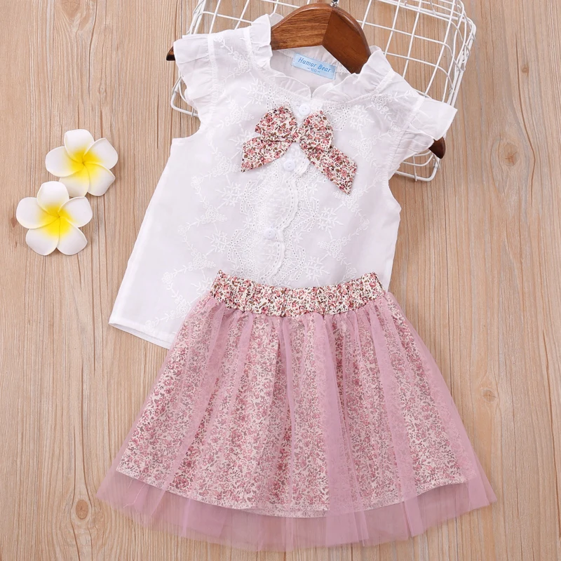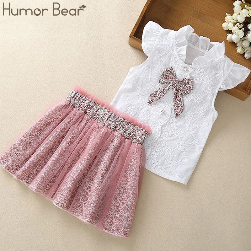 Humor BearОдежда для маленьких девочек популярная летняя новая детская одежда шифоновая футболка с бантом для малышей + штаны комплекты одежды для девочек От 3 до 7 лет