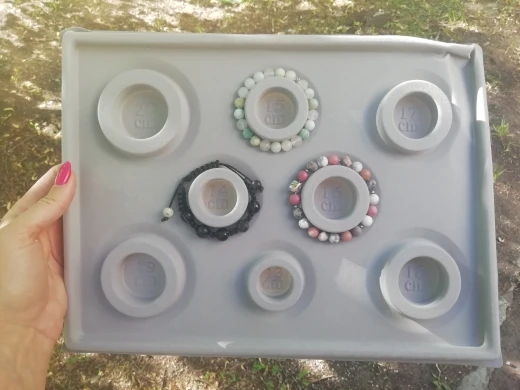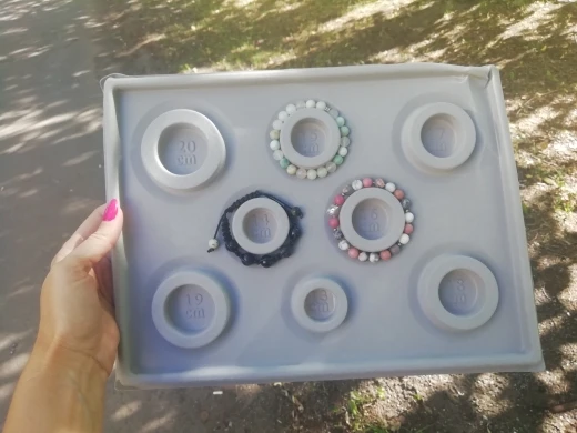 Незаменимая штука, очень сокращает время на подбор бусин в браслете. На доске размеры: 15,16,17,18 см по окружности браслета.