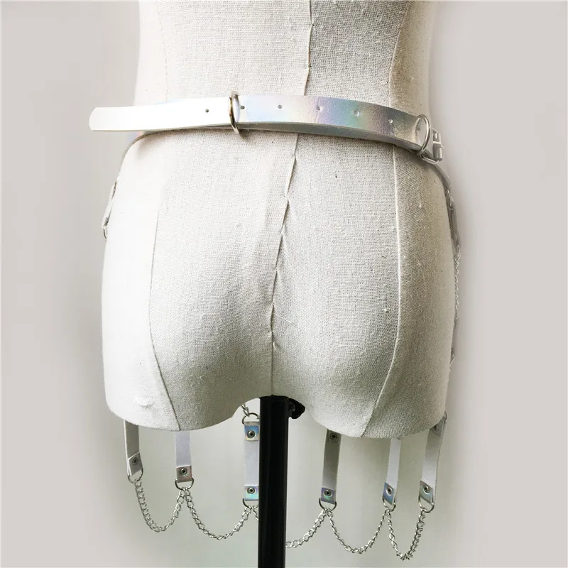 Блестящий ажурные PU мини-юбка; Пикантная обувь с выемкой, круглым носком и металлическими заклепками звено цепи; Юбка для девушек, 2020 панковские ночные вечерние рейв Фестивальная юбка лазерная