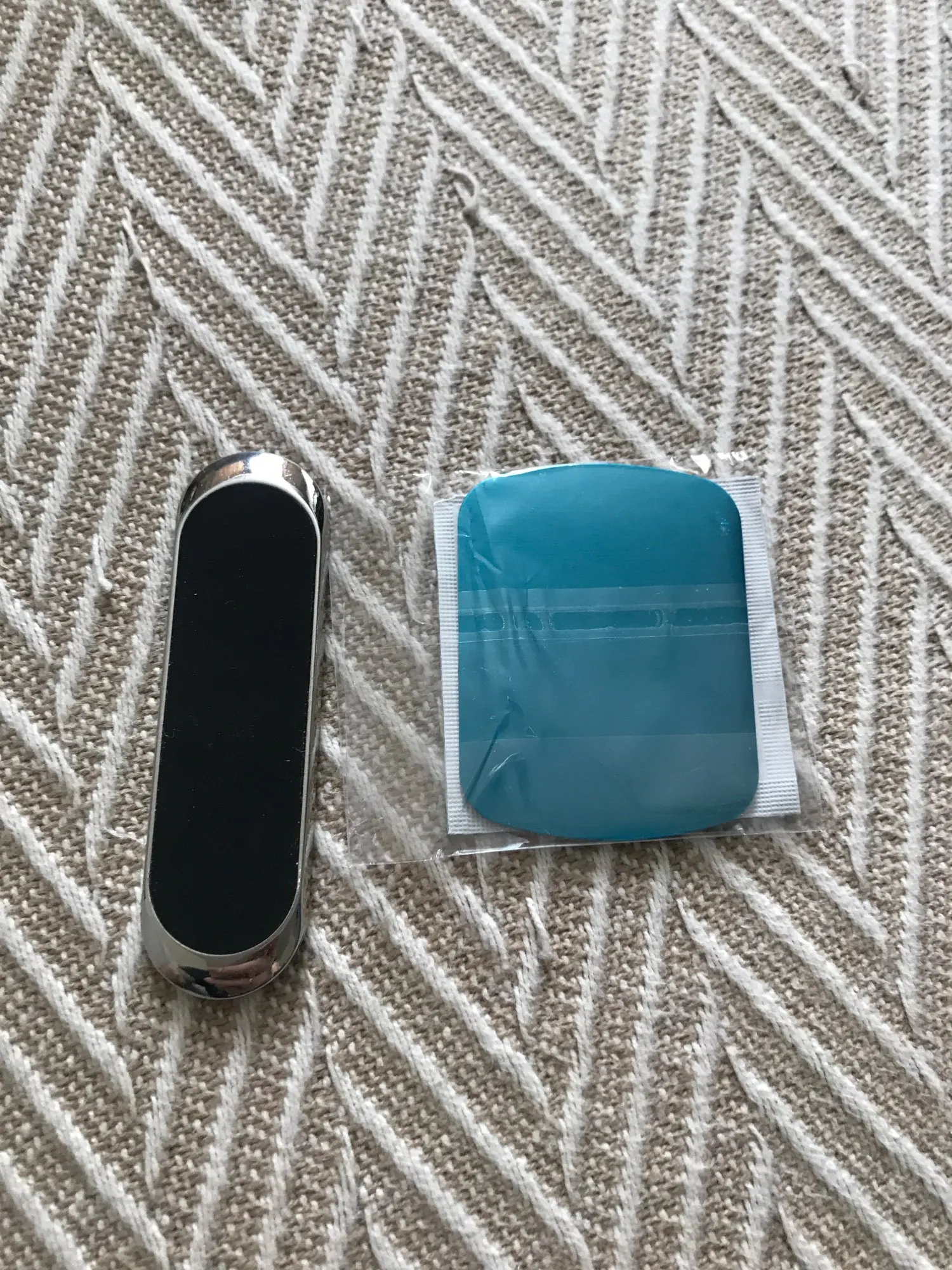 очень приятный материал из которого сделан магнит , в комплекте даже 2 магнитика для телефона и так же даже салфетки со спиртам