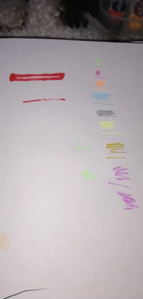 Кучки яркие, пишут хорошо, но у оранжевой сломан кончик, соотвественно она не пишет