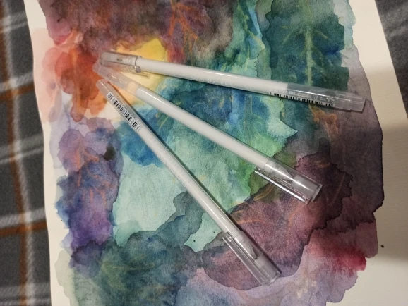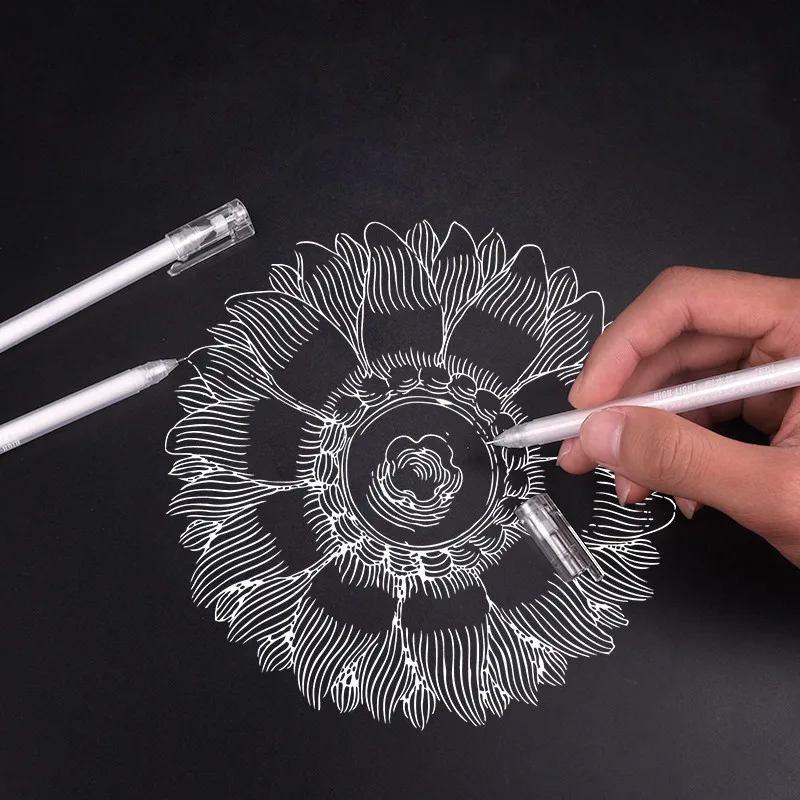 Все ручки отлично пишут на тёмной бумаге, особенно понравилась белая, вопреки ожиданиям, после высыхания прекрасный ровный белый, без тусклых проблесков. Рекомендую!