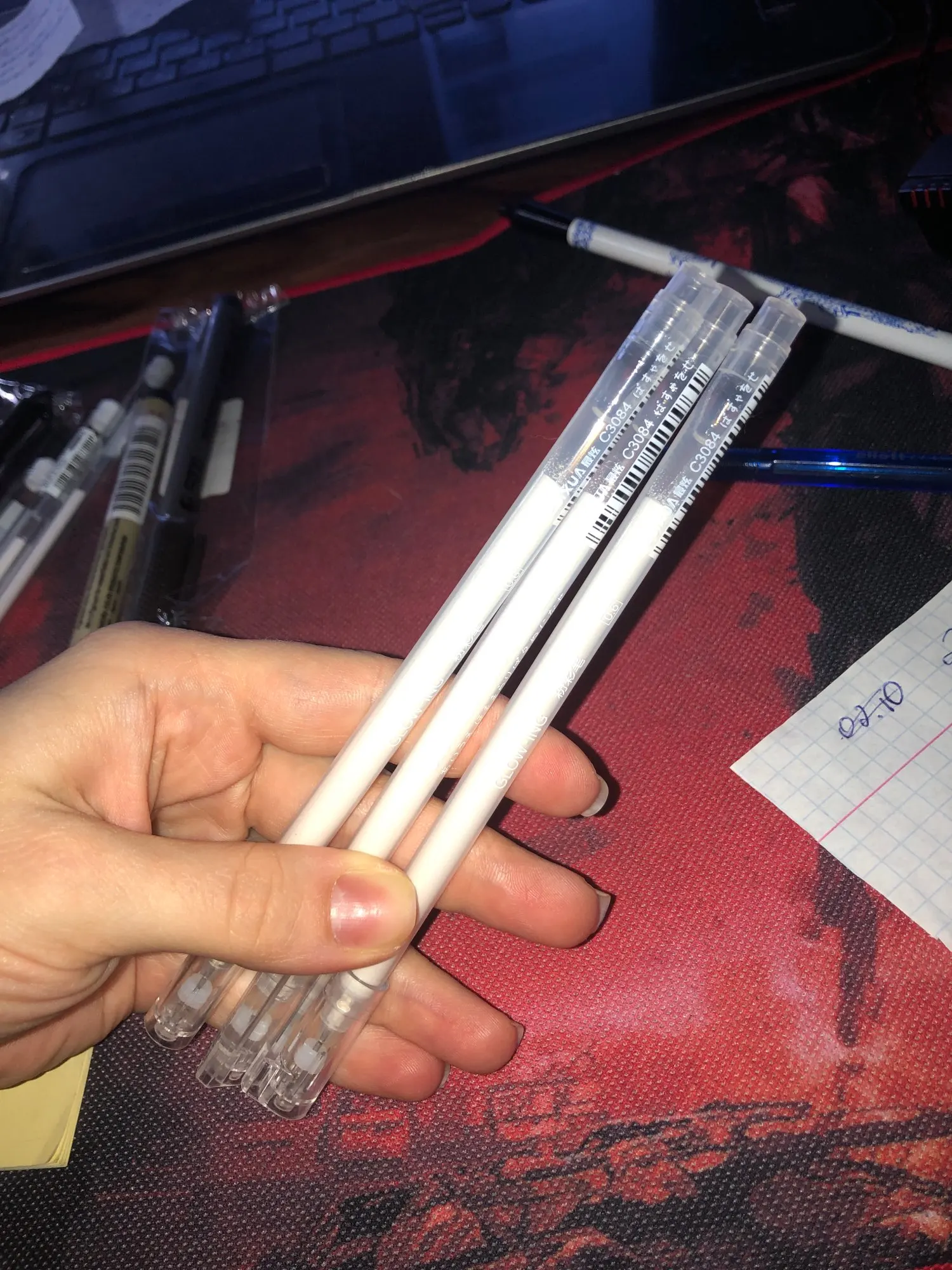 хорошие ручки, пишут , линия не прирываются, белая немного прозрачная. в целом хорошо