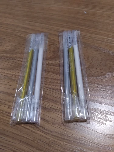 Не плохие ручки, дошли быстро, пишут без нареканий, белый чуть прозрачный, однако брала из-за серебряного и золотого. Так что особо не имеет значения