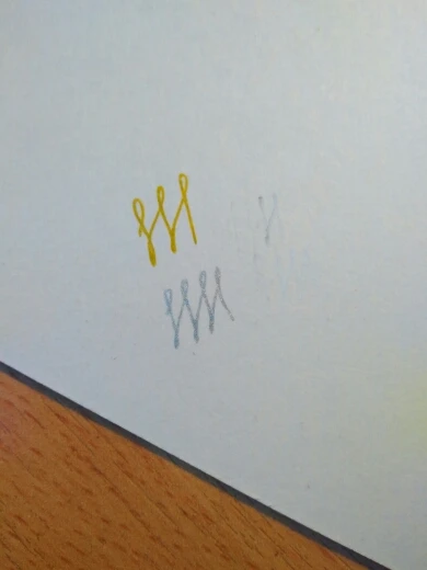 Пришел через три недели, качество в порядке. Возможно, я слишком choosy, но мне не понравился золотой оттенок: в нем должно быть много желтого цвета. Белый не является отличным: линии не твердые, но, по крайней мере, он записывает без зазоров. Серебро идеально. Для искусства мне нравится делать вещи немного толстыми, но, если вы привыкли к ним, все будет в порядке.