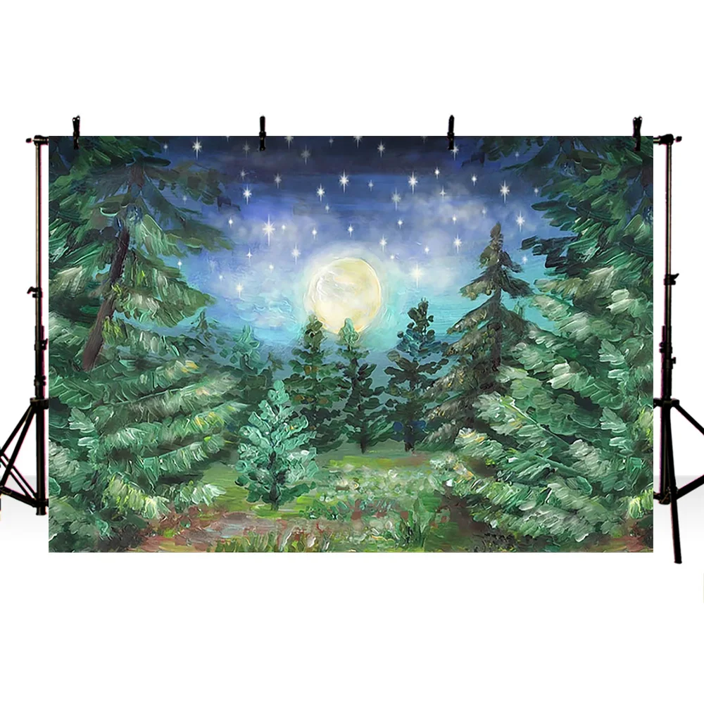 Фон для фотосъемки новорожденных, луна, звезда, сосновый лес, картина маслом, стильный фон для фотостудии